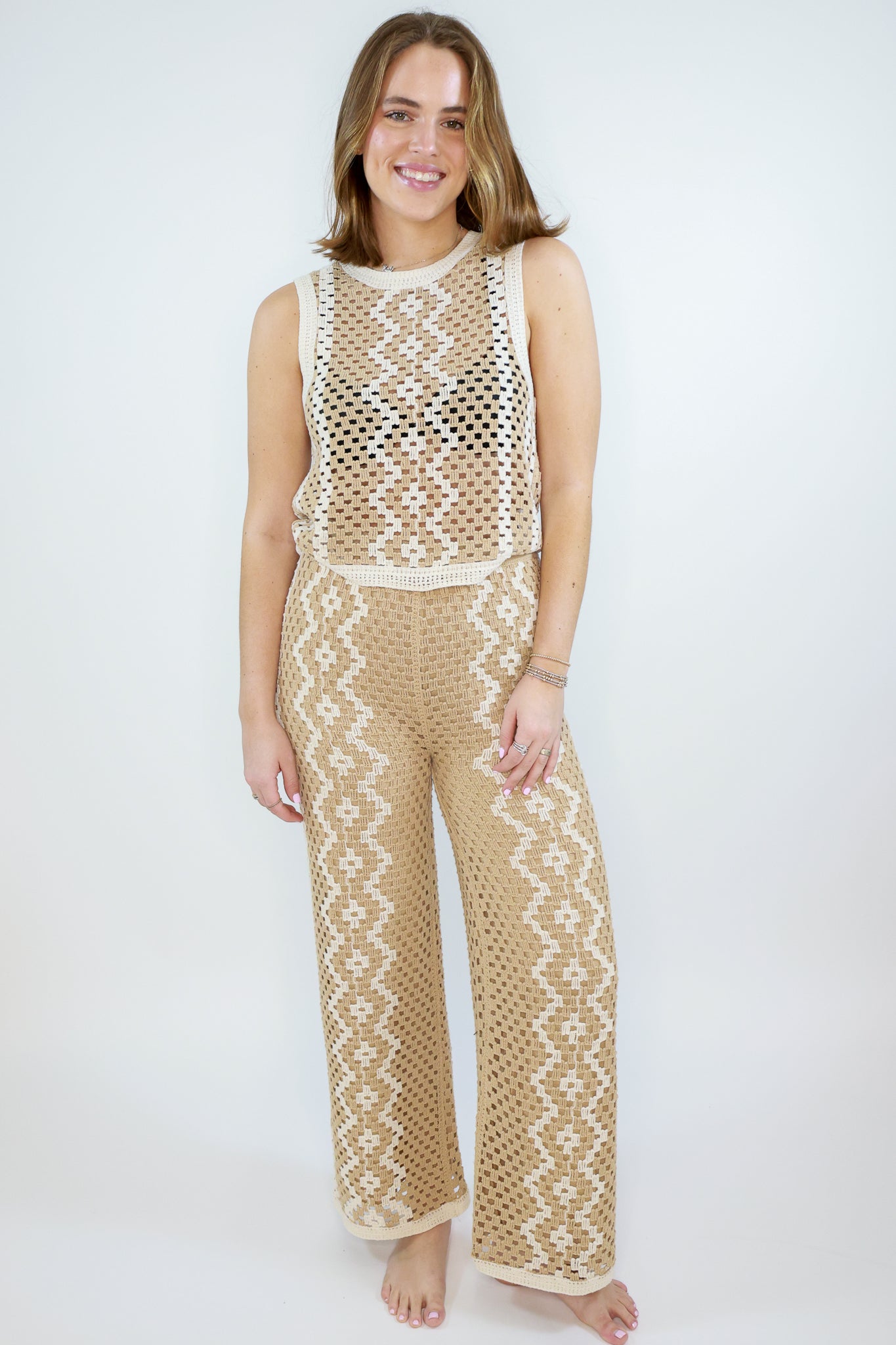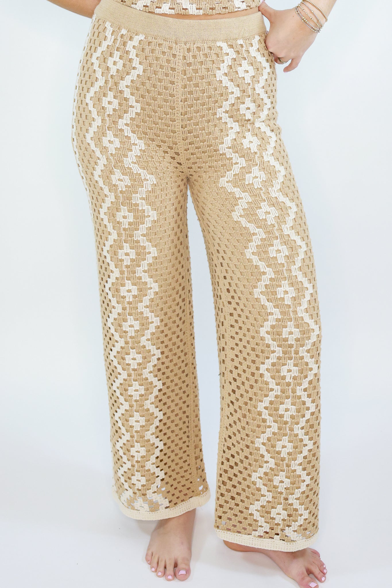 The Loma Crochet Pant is a stylish and versatile addition to any wardrobe. Made with natural tones, these wide leg pants can be easily paired with the Oasis Crochet Top for a complete and sophisticated look. With full lining, these pants offer both comfort and style.