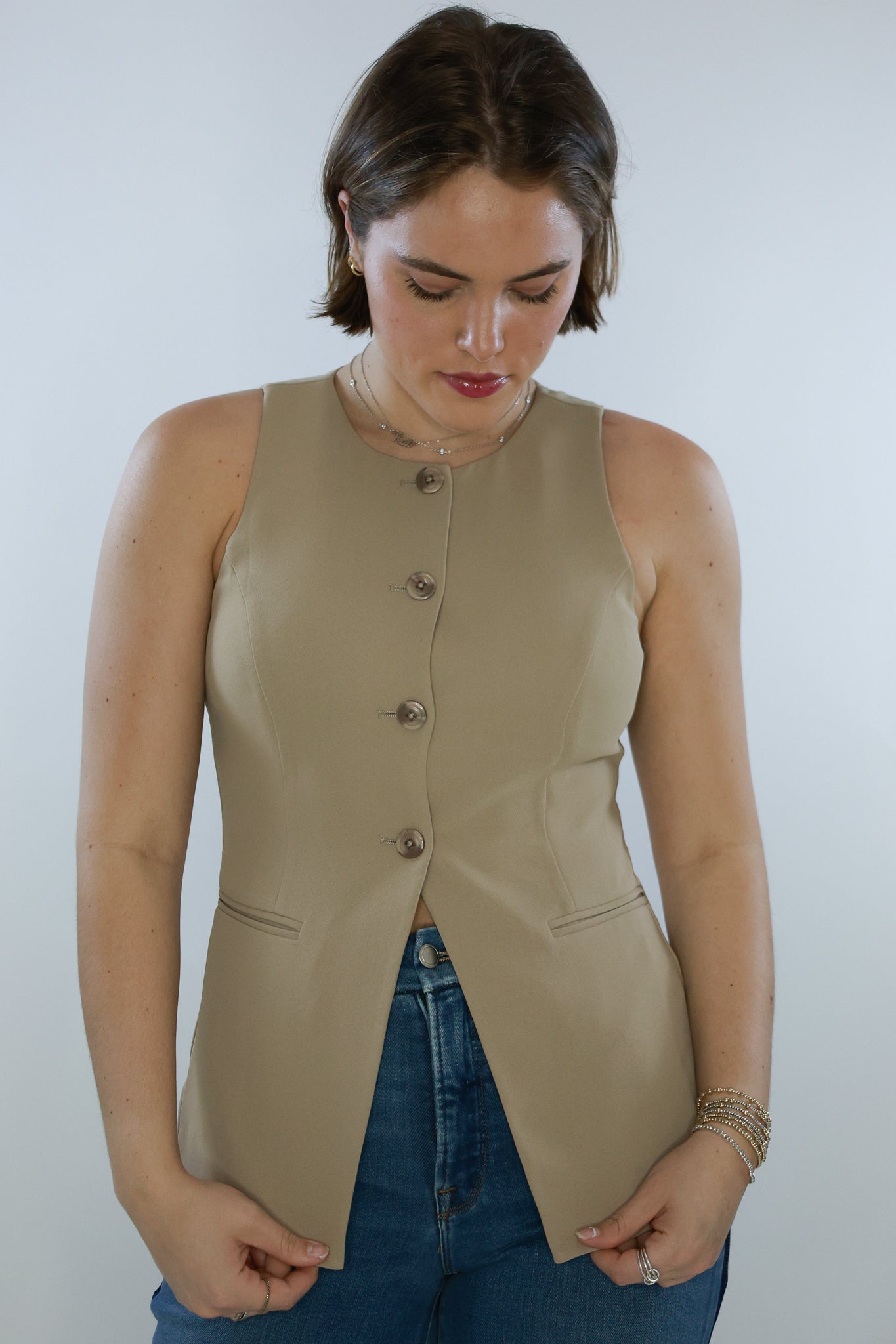 Elevate your style with our Luxe Sculpted Vest, designed with a high neck and button closure for a sophisticated and exclusive look. Crafted with premium materials, this vest is a statement piece that offers both elegance and comfort. Perfect for any occasion, it's a must-have addition to your luxury wardrobe.