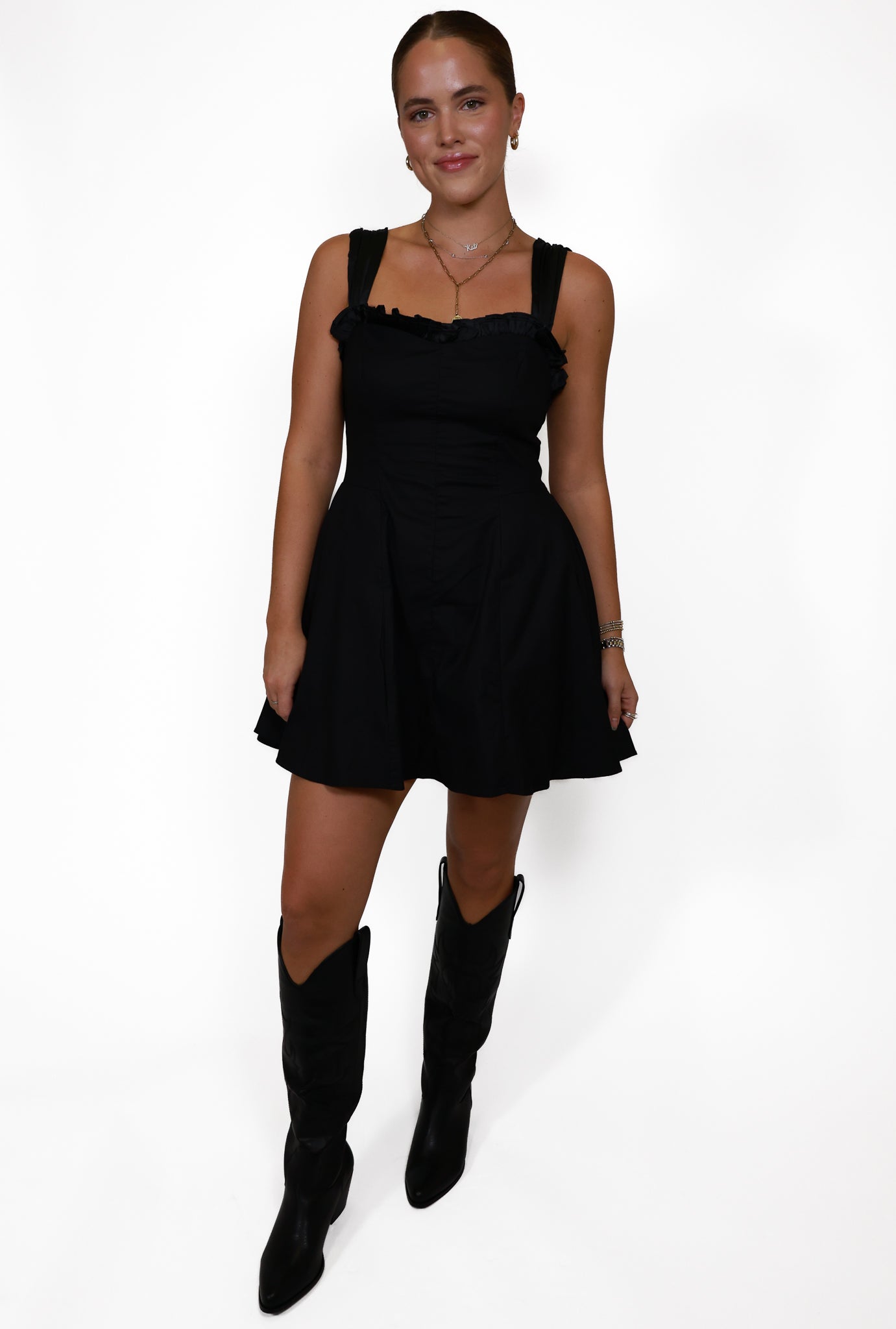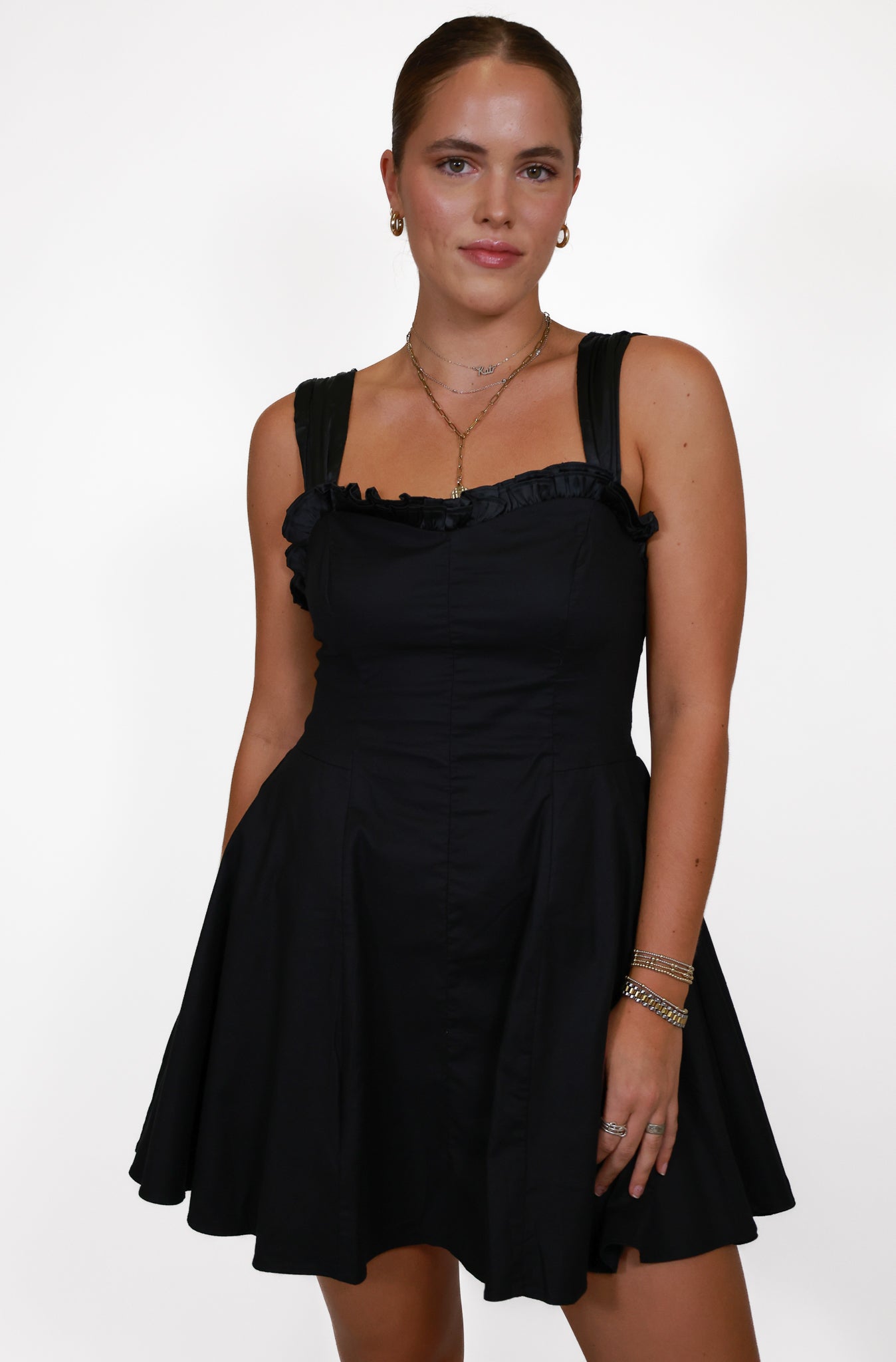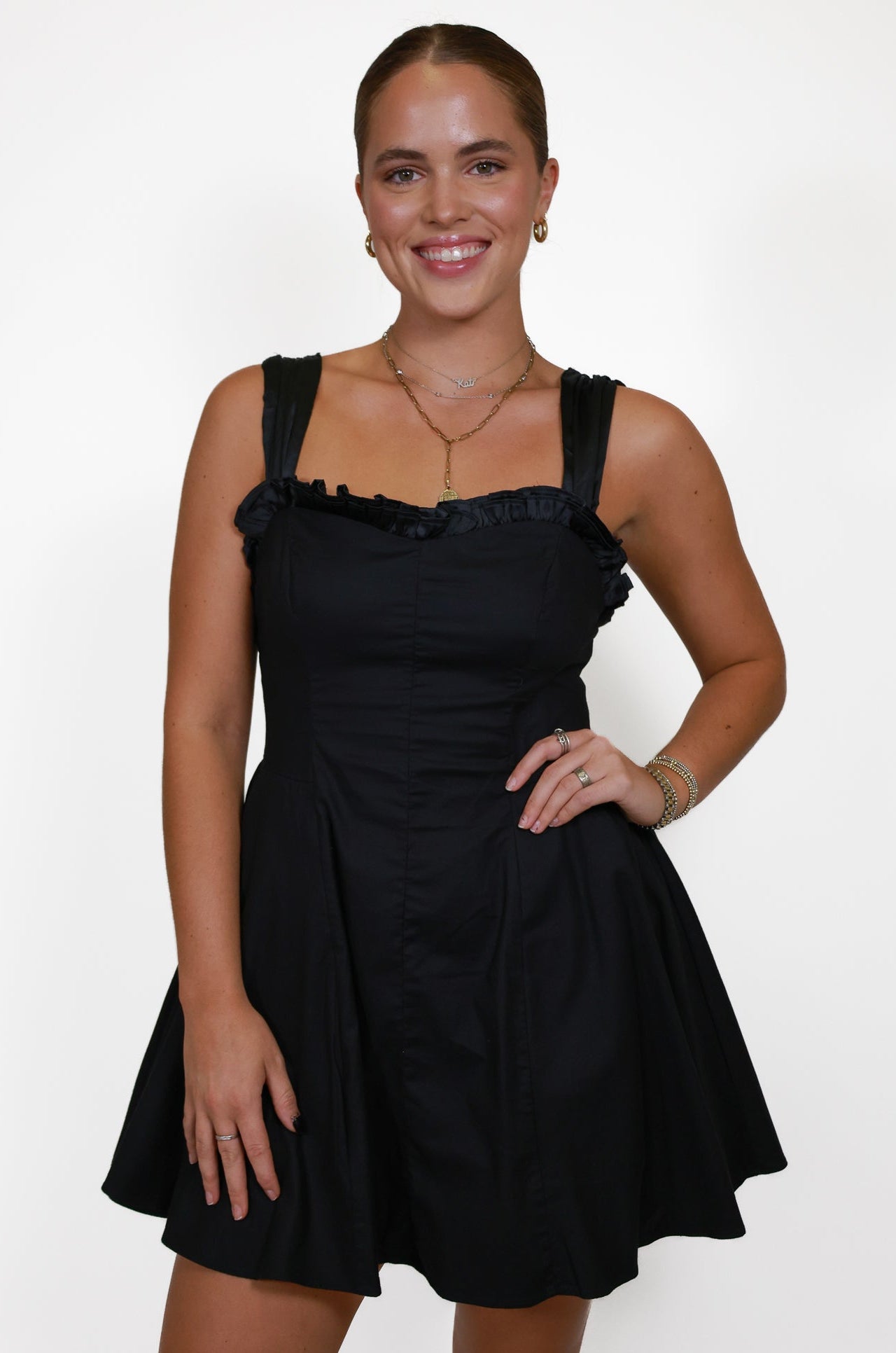 This A-line mini dress by Free People exudes elegance and charm with its ruffle trim and satin shoulder straps. Perfect for any occasion, the Midnight Magic Mini Dress will have you feeling confident and stylish. Enhance your wardrobe with this must-have piece.