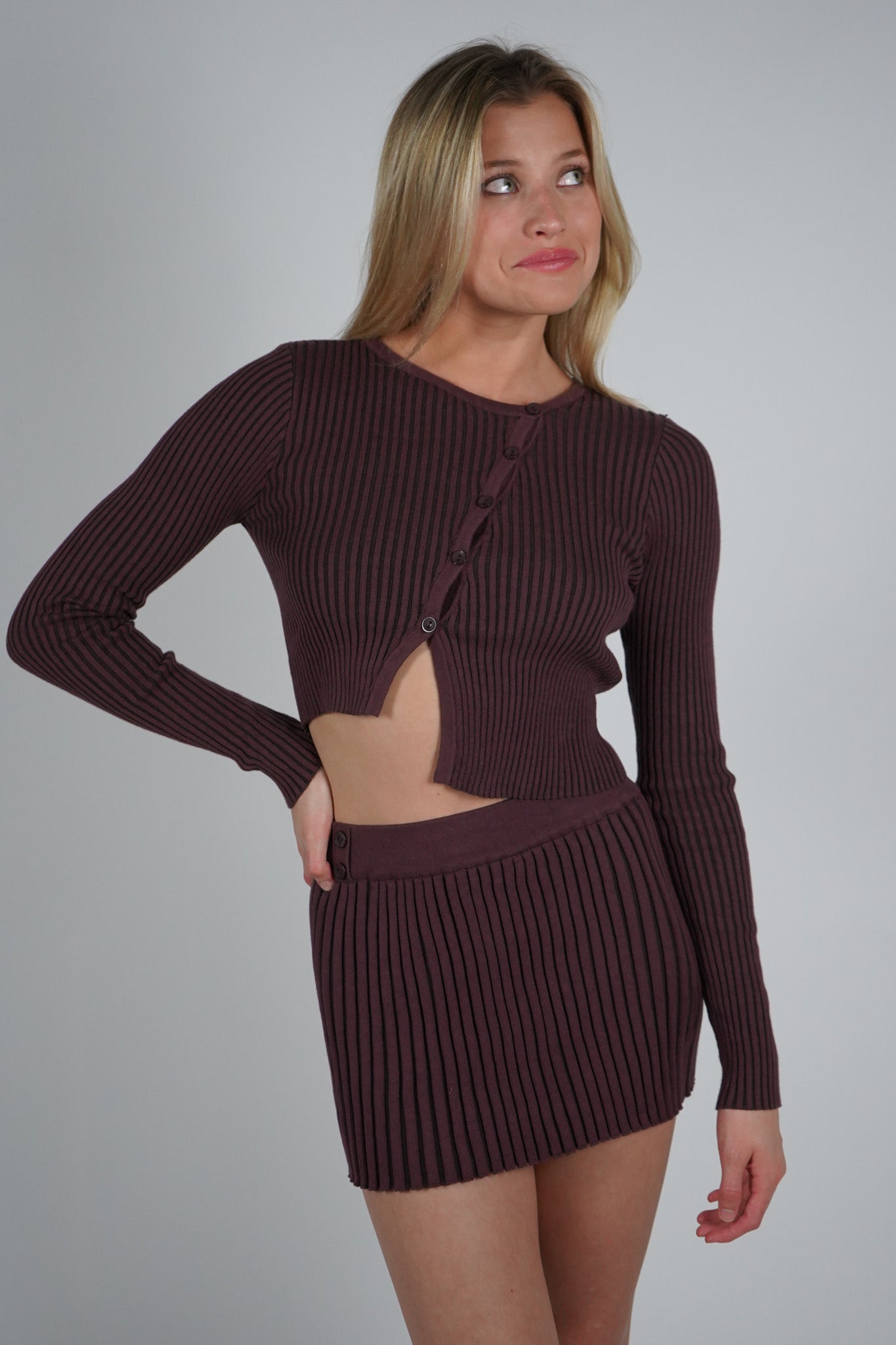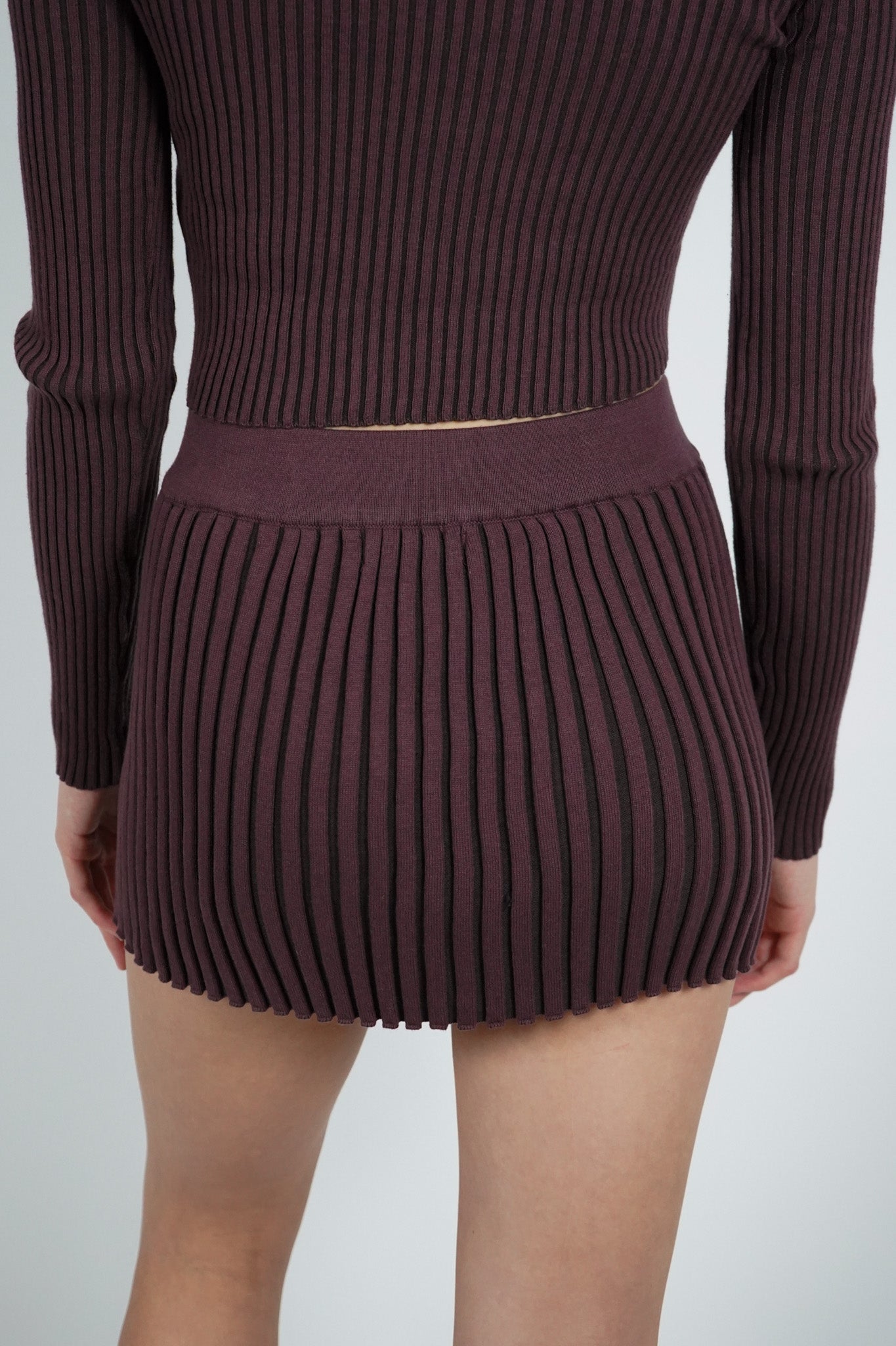 Turn heads in the Miley Skirt with its ribbed texture and wide waist band. Perfect for a playful and stylish look, this mini skirt is a must-have for your wardrobe.