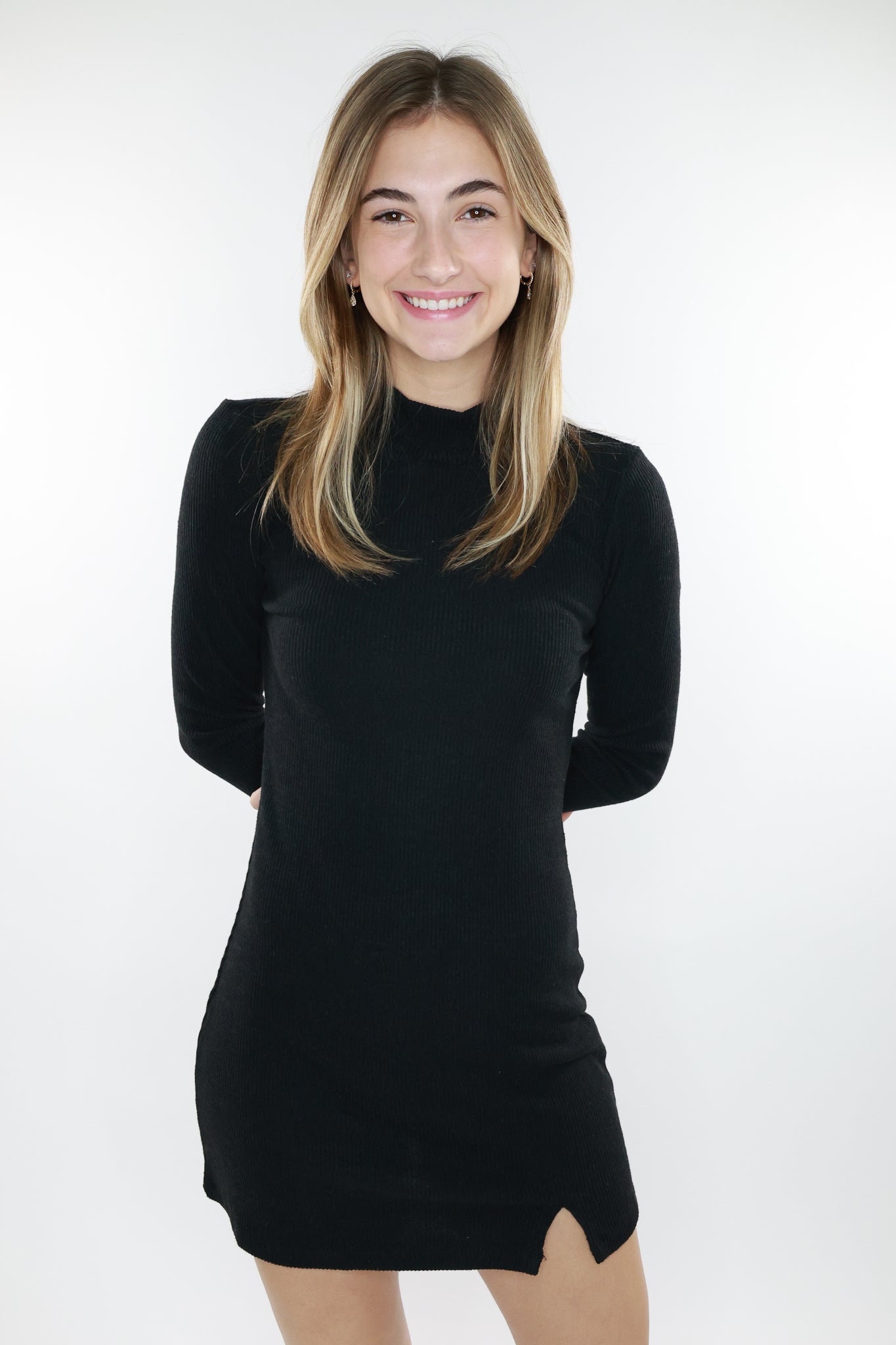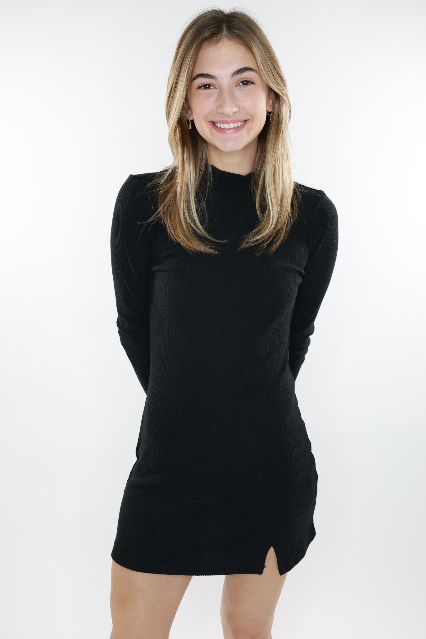 Expertly crafted for both style and comfort, the Nadene Mini Dress flaunts a ribbed design, long sleeves, and a chic mock neck. Available in two versatile colors, this dress is a must-have for any wardrobe. Elevate your look with this fashion-forward piece that is sure to turn heads.