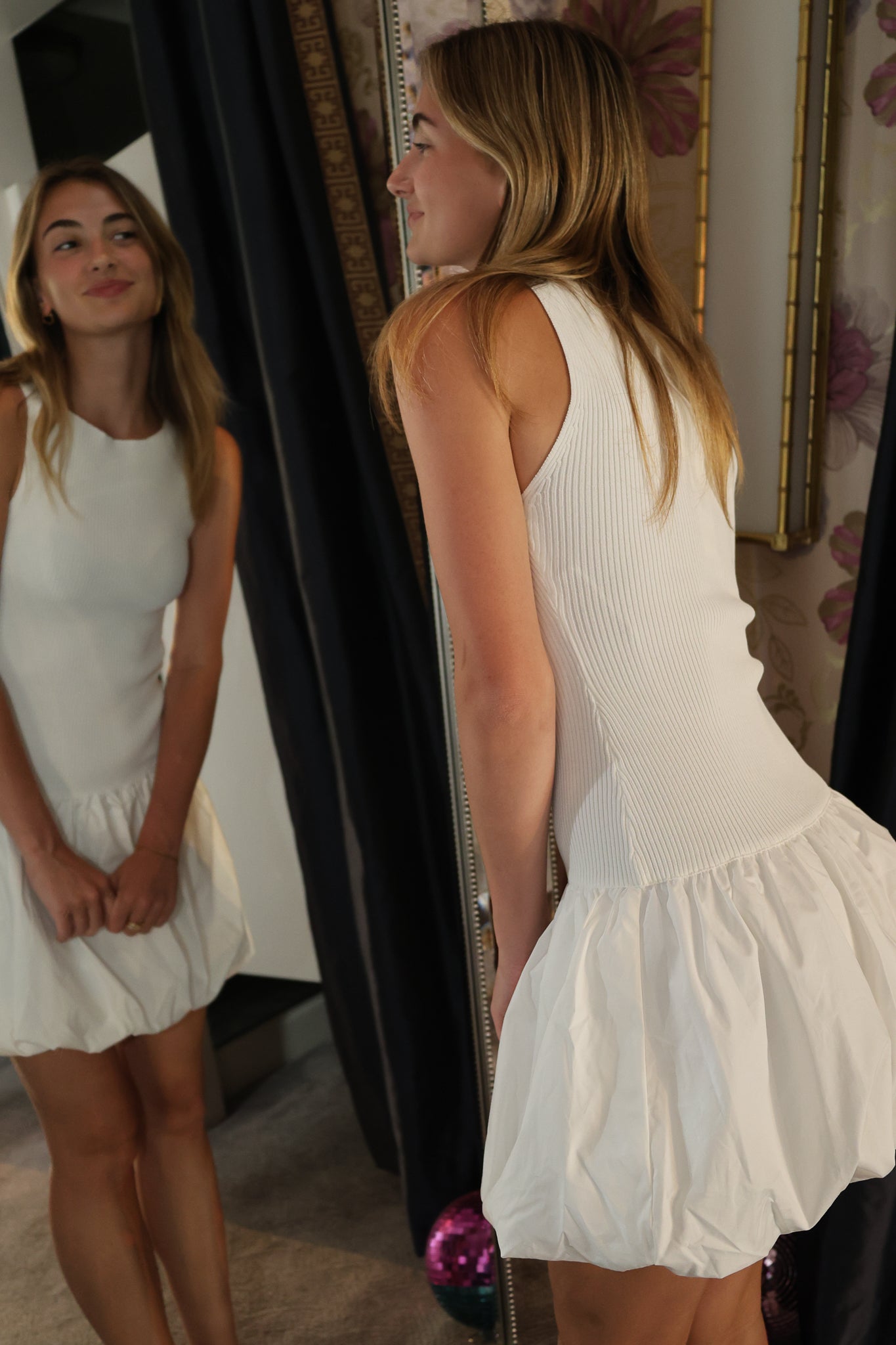 Indulge in the playful mix of media with the Nettie Sweater Dress. This quirky piece features a unique bubble hem and flattering drop waist design, making it a standout choice for any occasion. Say goodbye to boring dresses and hello to fun fashion!