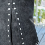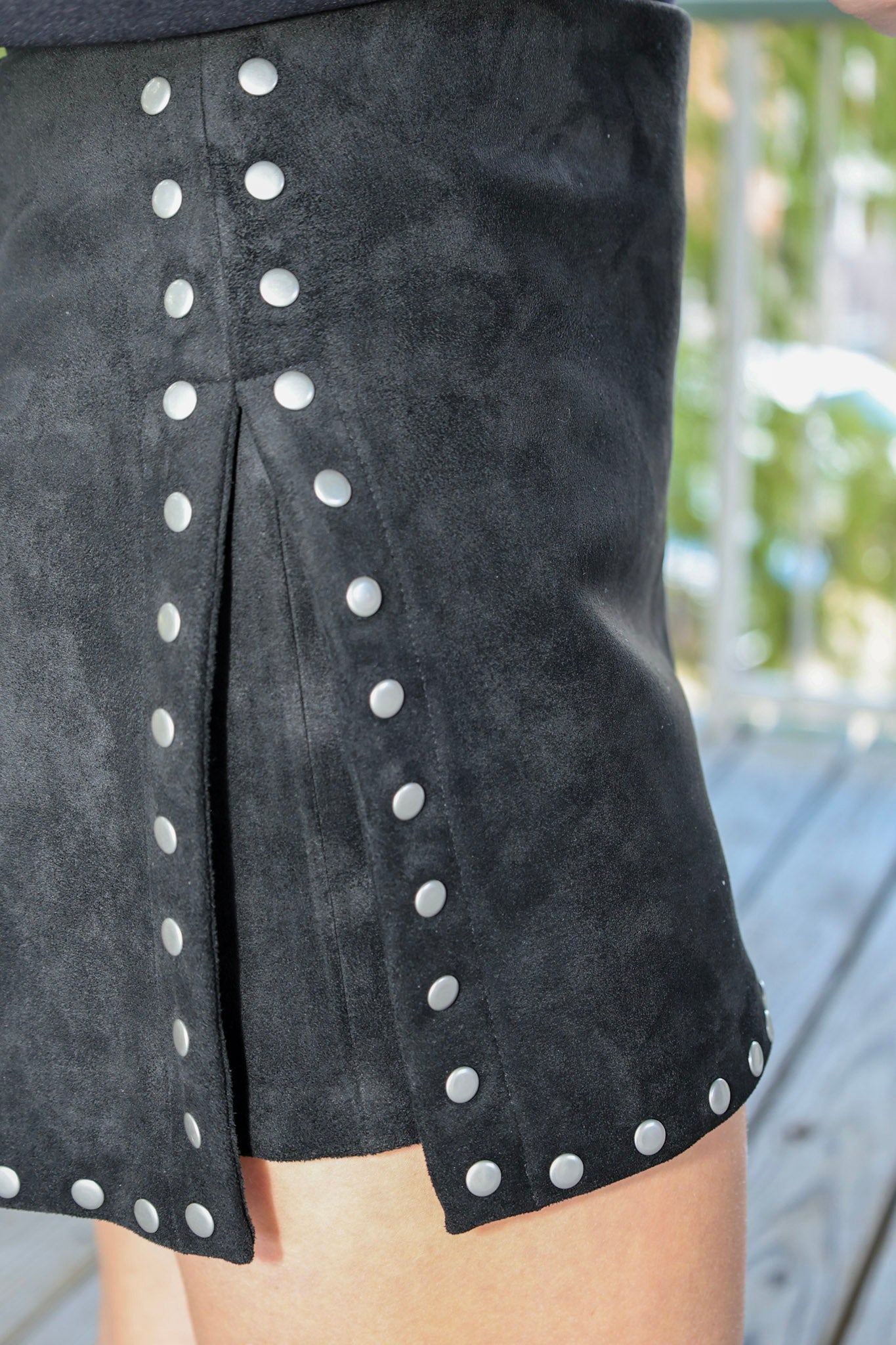 The Nirvana Skort combines style with function in a way that actually works. Built from midweight suede that feels premium without being fussy, this piece features shorts lining so you can move freely. The hidden back zipper keeps things sleek, while studded accents and side openings add that edge you're looking for. Perfect for anyone who refuses to choose between looking good and feeling comfortable.
