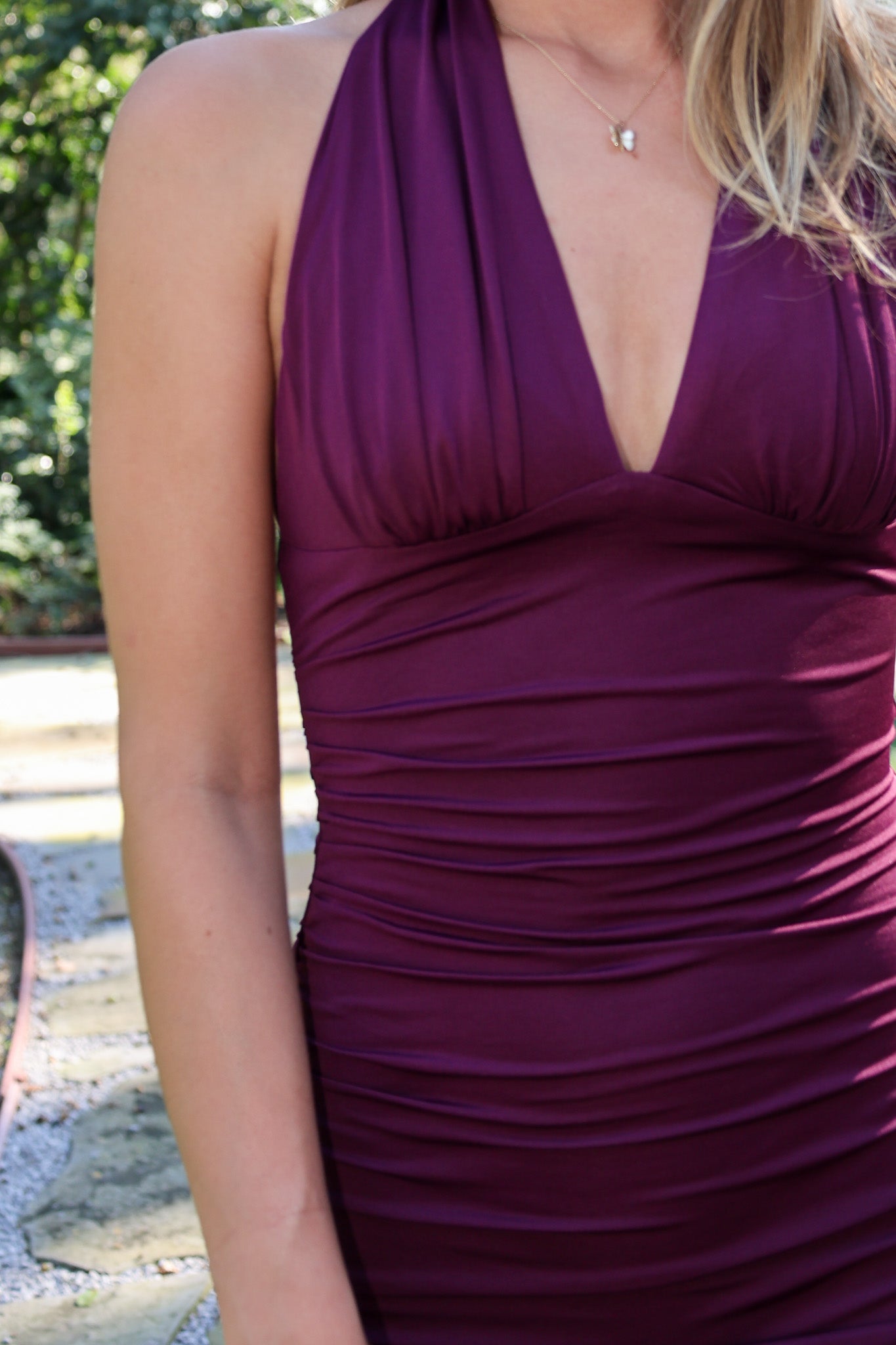 Turn heads in the Penelope Dress with its halter neck and plunging neckline that’s totally bold. The ruched bodycon fit hugs your curves and the mini length keeps it flirty and fun—perfect for parties or a night out with friends.