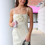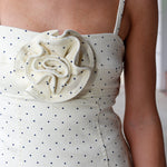 Steve Madden Polka Dot Peony Front 3D Flower Detail Dress - Pristine Ivory