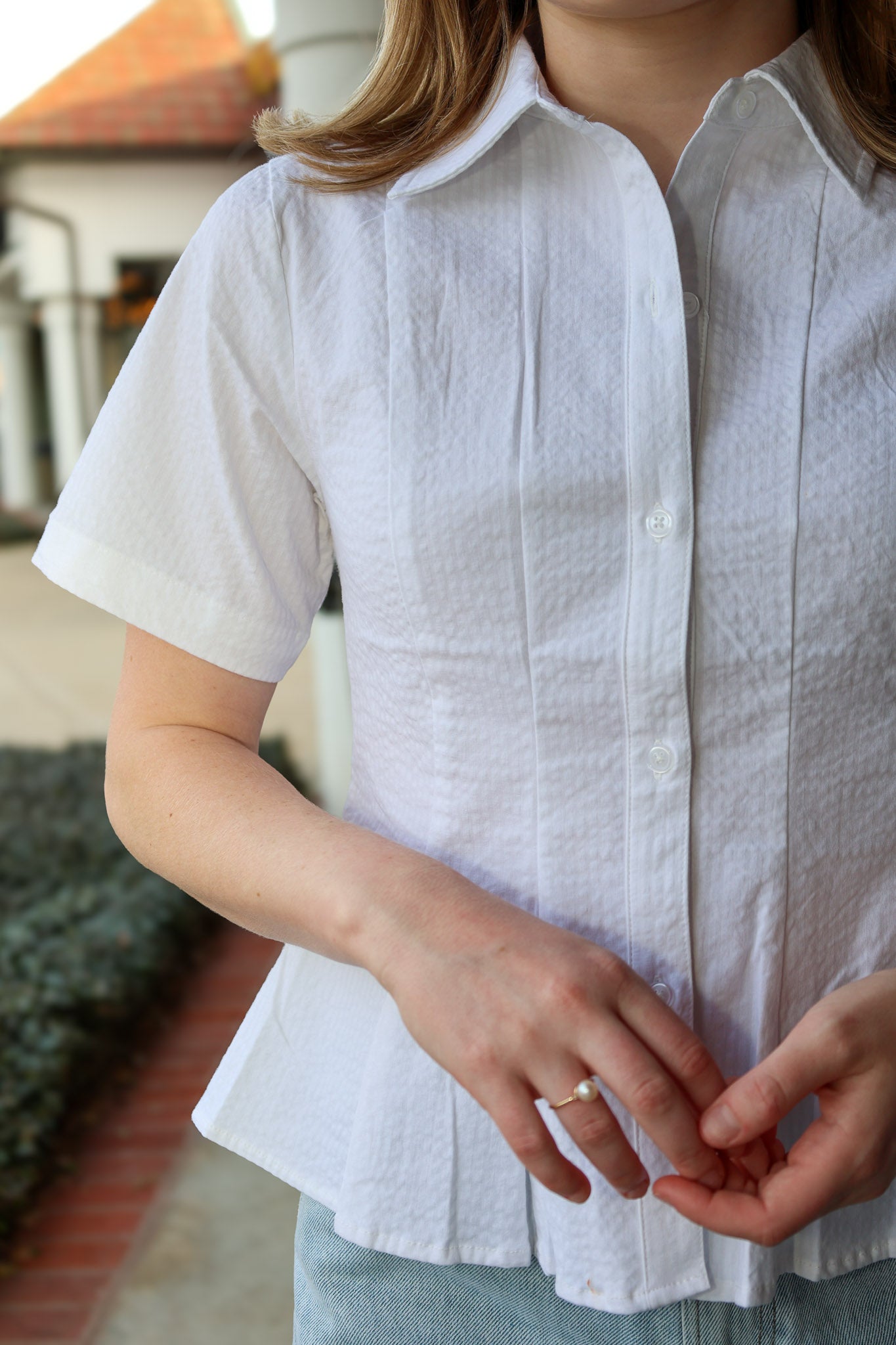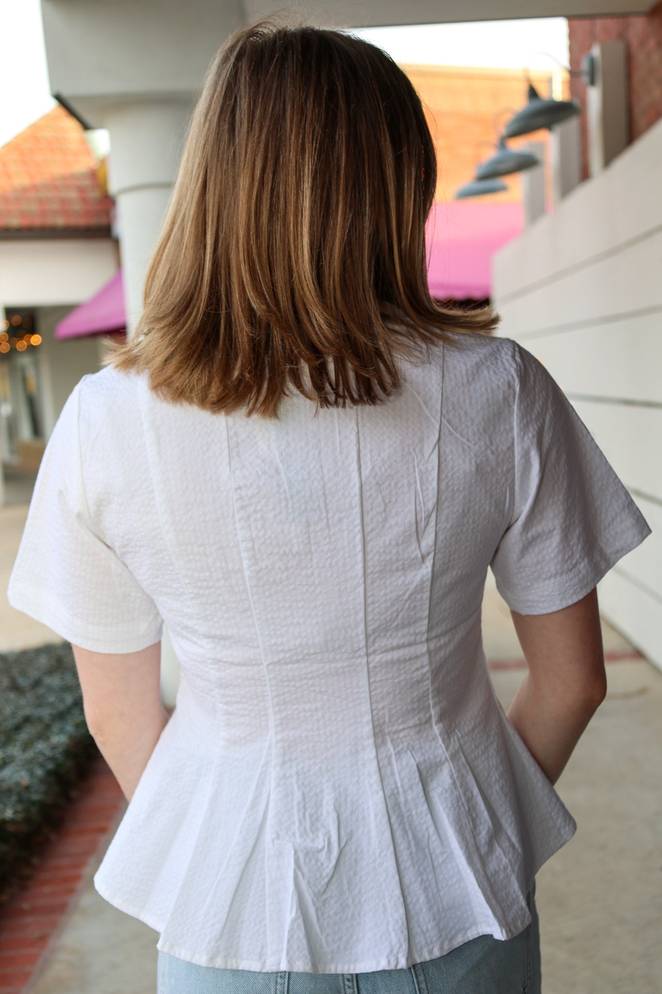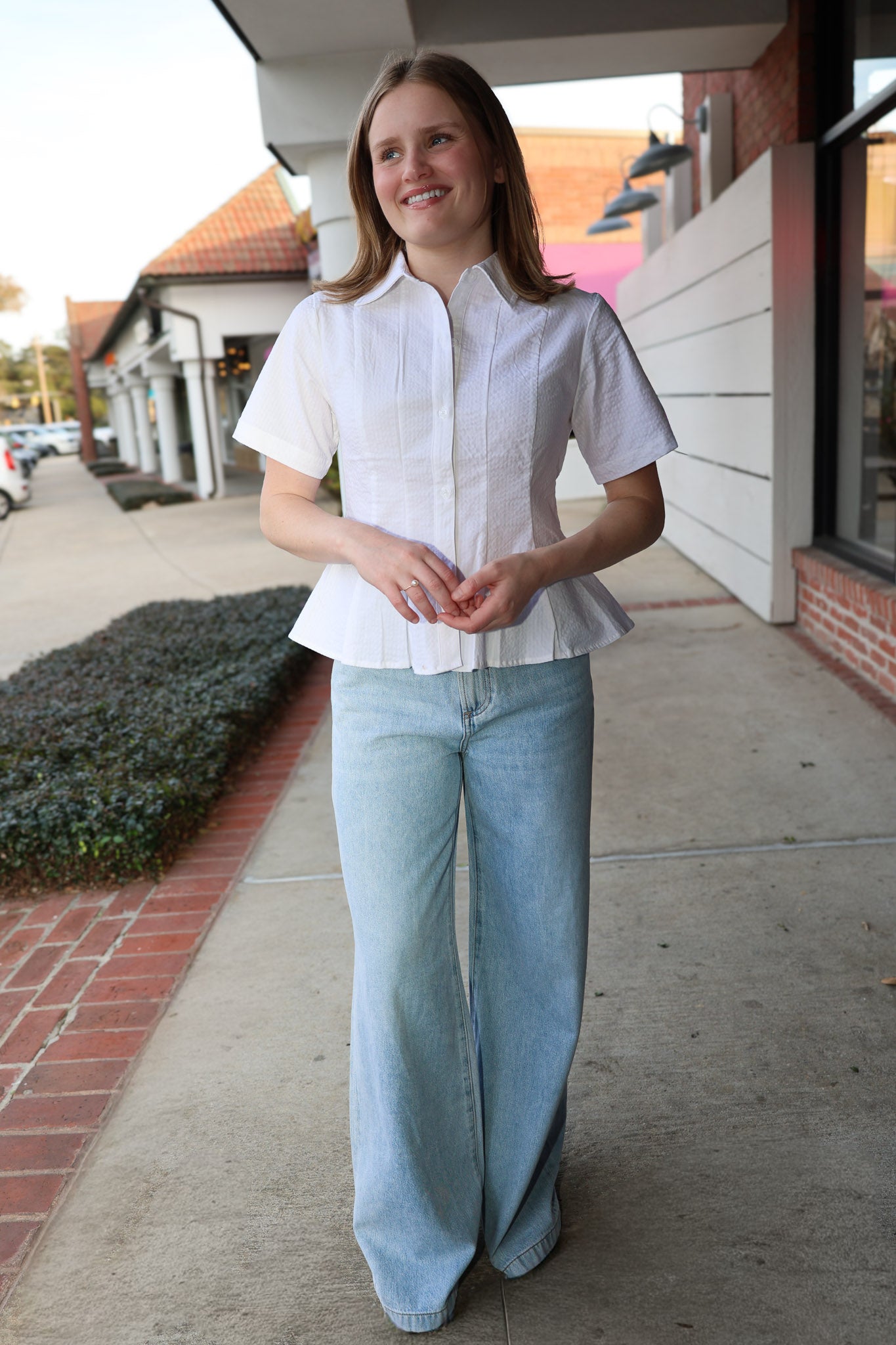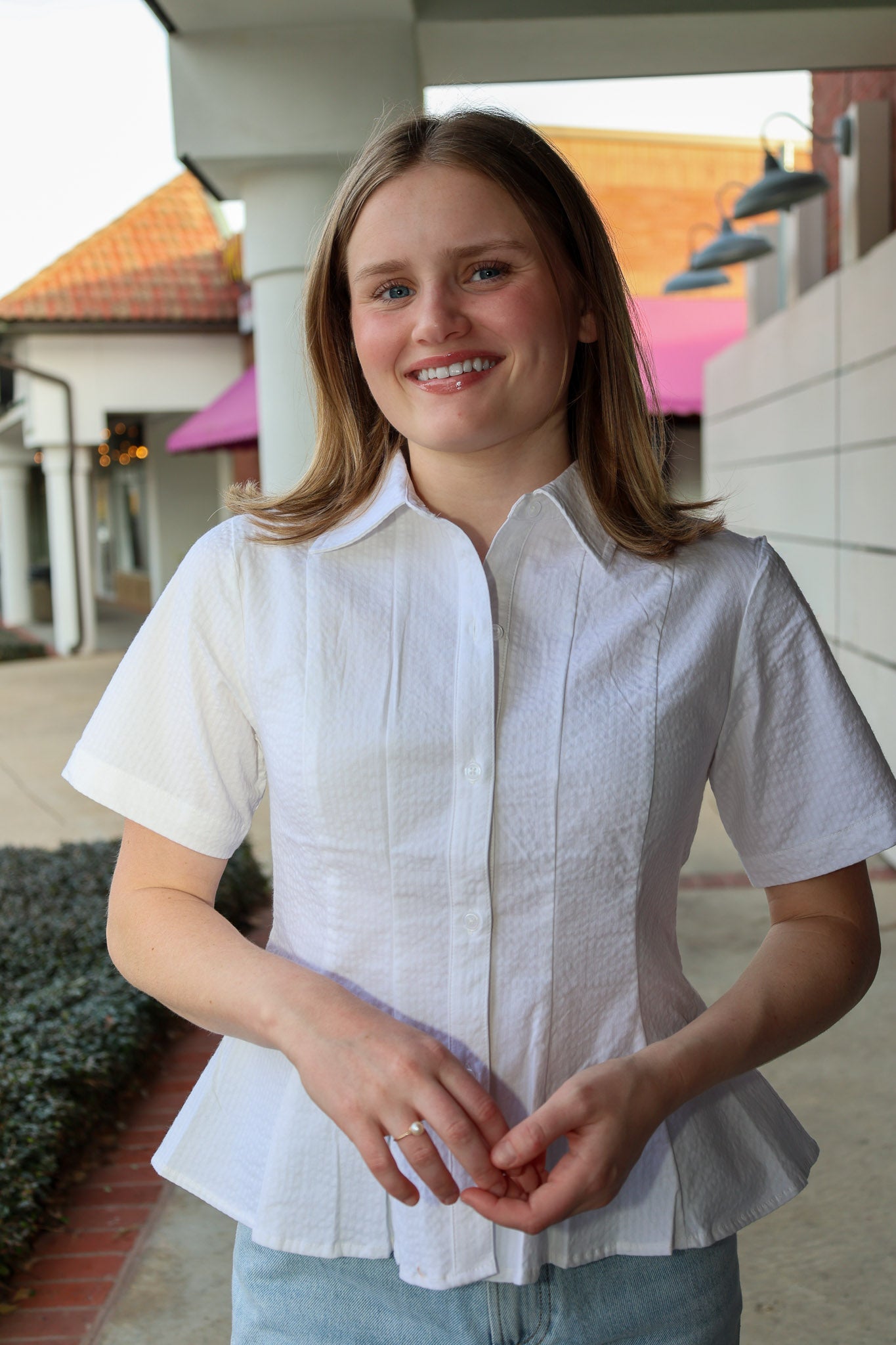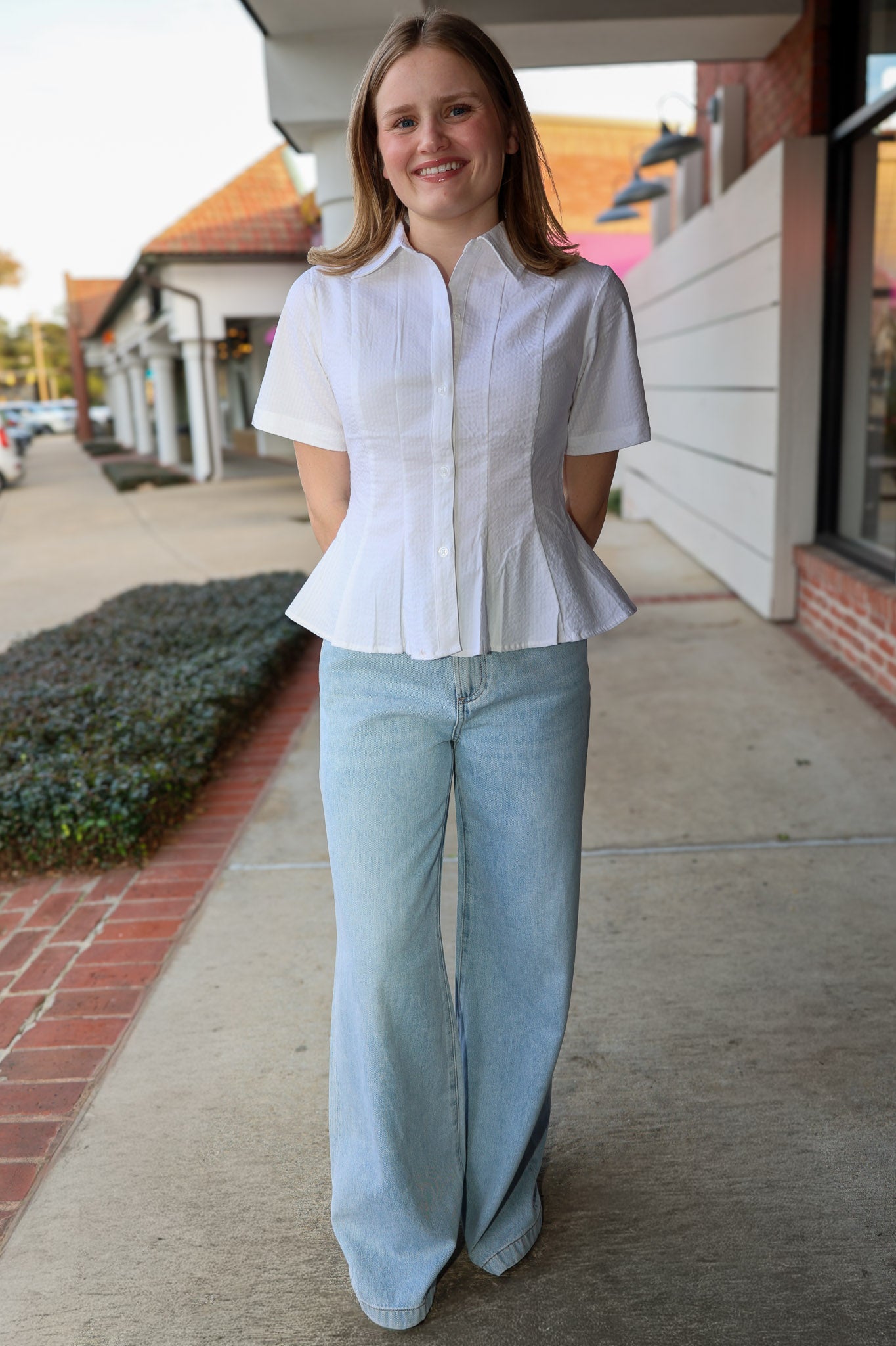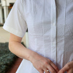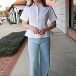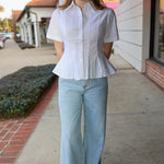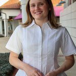 The Porter Top delivers effortless sophistication with its crisp pleated front, functional button-up closure, and playful peplum waist. Short sleeves make it the perfect layering piece for any season.