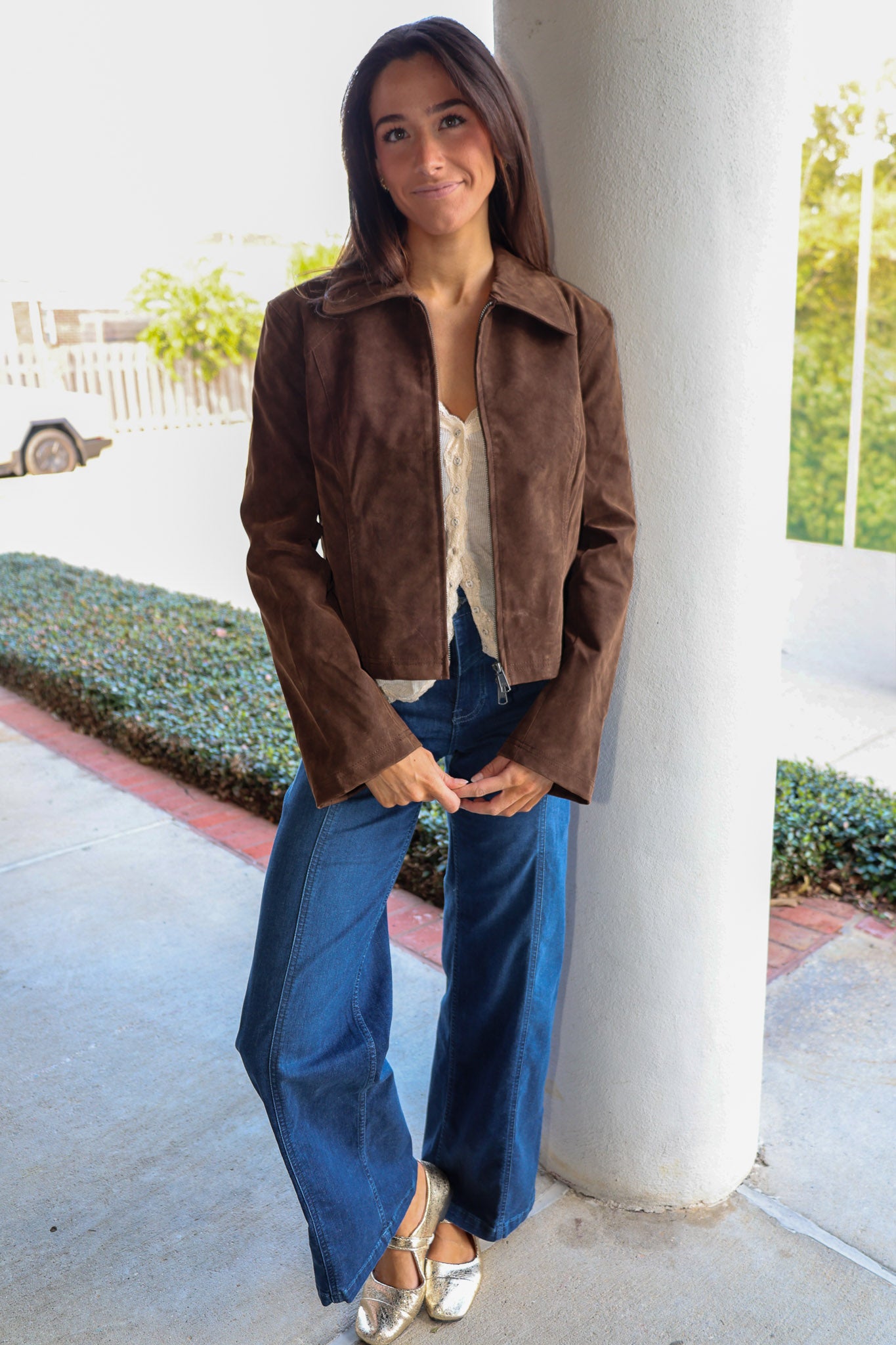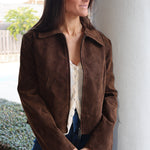 The River Vegan Jacket by Free People is the effortless layer you'll reach for constantly. Made from soft vegan suede, this jacket has that perfectly worn-in feel that looks cool without trying. Hidden side pockets keep your essentials close, while sharp seam details and a front zipper add edge and functionality. It's the kind of staple piece that works with literally everything in your closet.