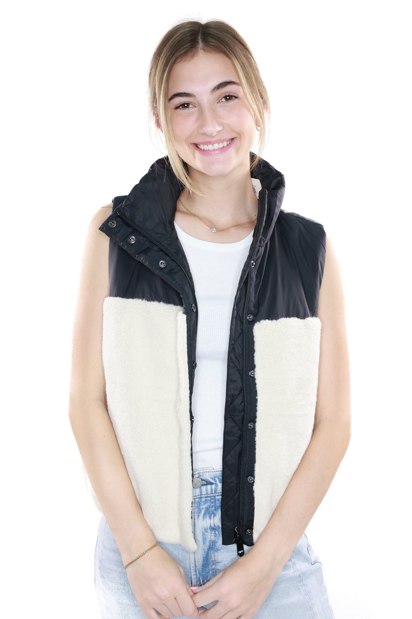 Introducing the Rocky Sherpa Vest, the ultimate mix of style and functionality. With a unique combination of puffer and sherpa materials, this vest provides optimal warmth and comfort. Featuring both snap and zipper closures, it offers versatile wear and ensures a secure fit. Upgrade your wardrobe with this must-have piece today.