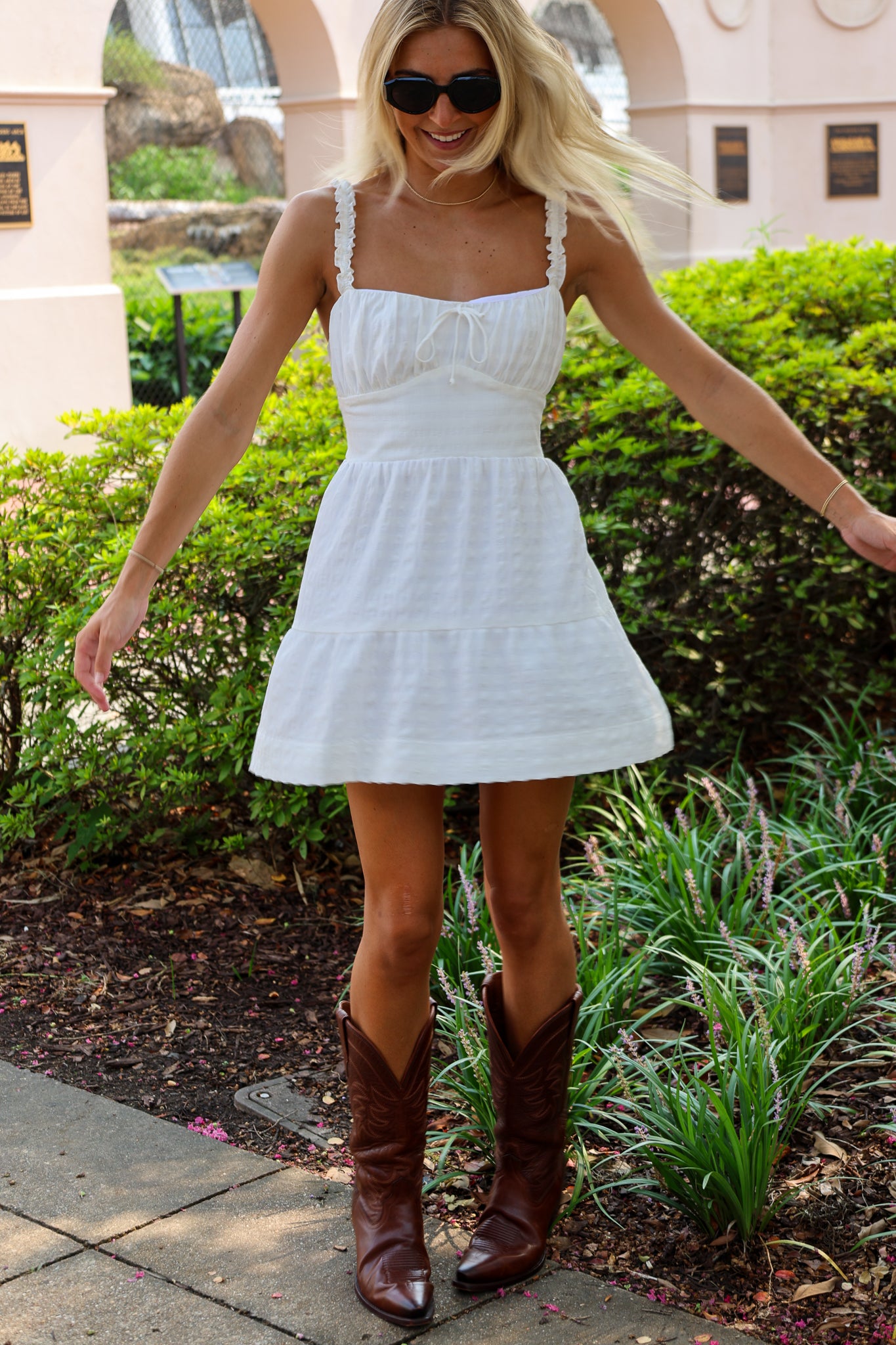 Introducing the Rosie Mini Dress - a sophisticated and stylish addition to your wardrobe. This sleeveless dress features elegant ruffle detailing and a flattering hen style fit. Perfect for any occasion, this little white dress will have you looking and feeling your best.