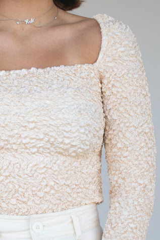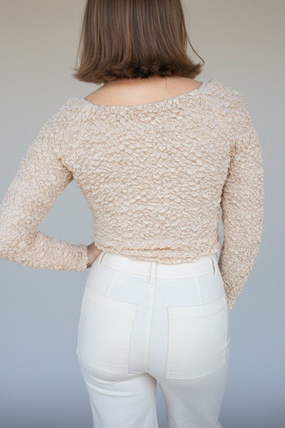 The Sorrel Top is giving effortless cool-girl energy. This long sleeve piece features a chic square neckline and cropped cut that hits just right. The smocked, fitted design hugs you in all the right places while keeping things comfy. Perfect for layering over basics or styling solo—it's the kind of top that makes any outfit instantly better.