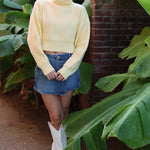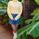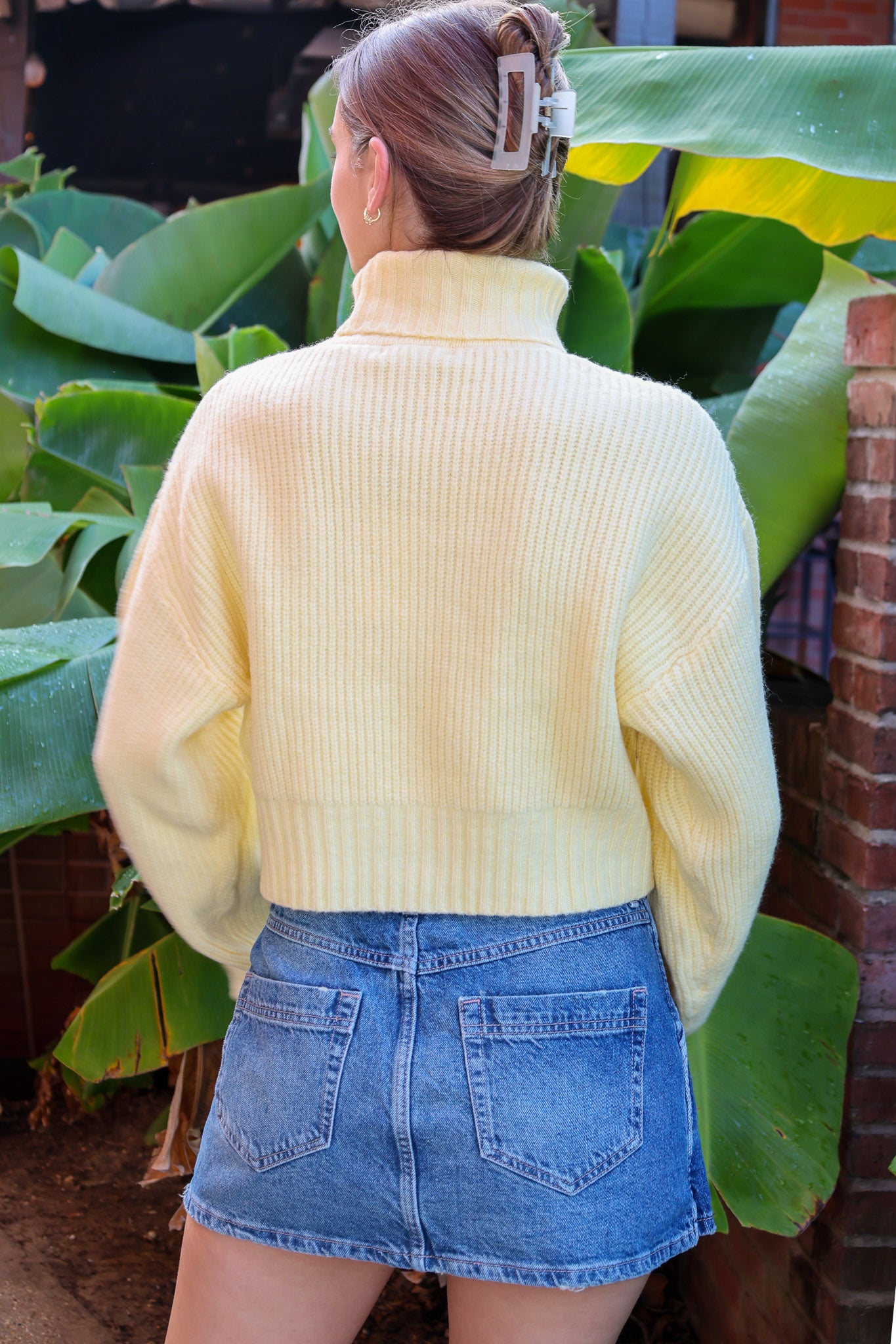 The Stephanie Sweater Top is a bold pick in vibrant yellow that instantly lifts any outfit. The classic turtleneck keeps you warm and cozy, while the slightly cropped fit shows just enough skin for that modern, put-together look. Layer it under jackets or wear it solo—either way, you're giving main character energy.