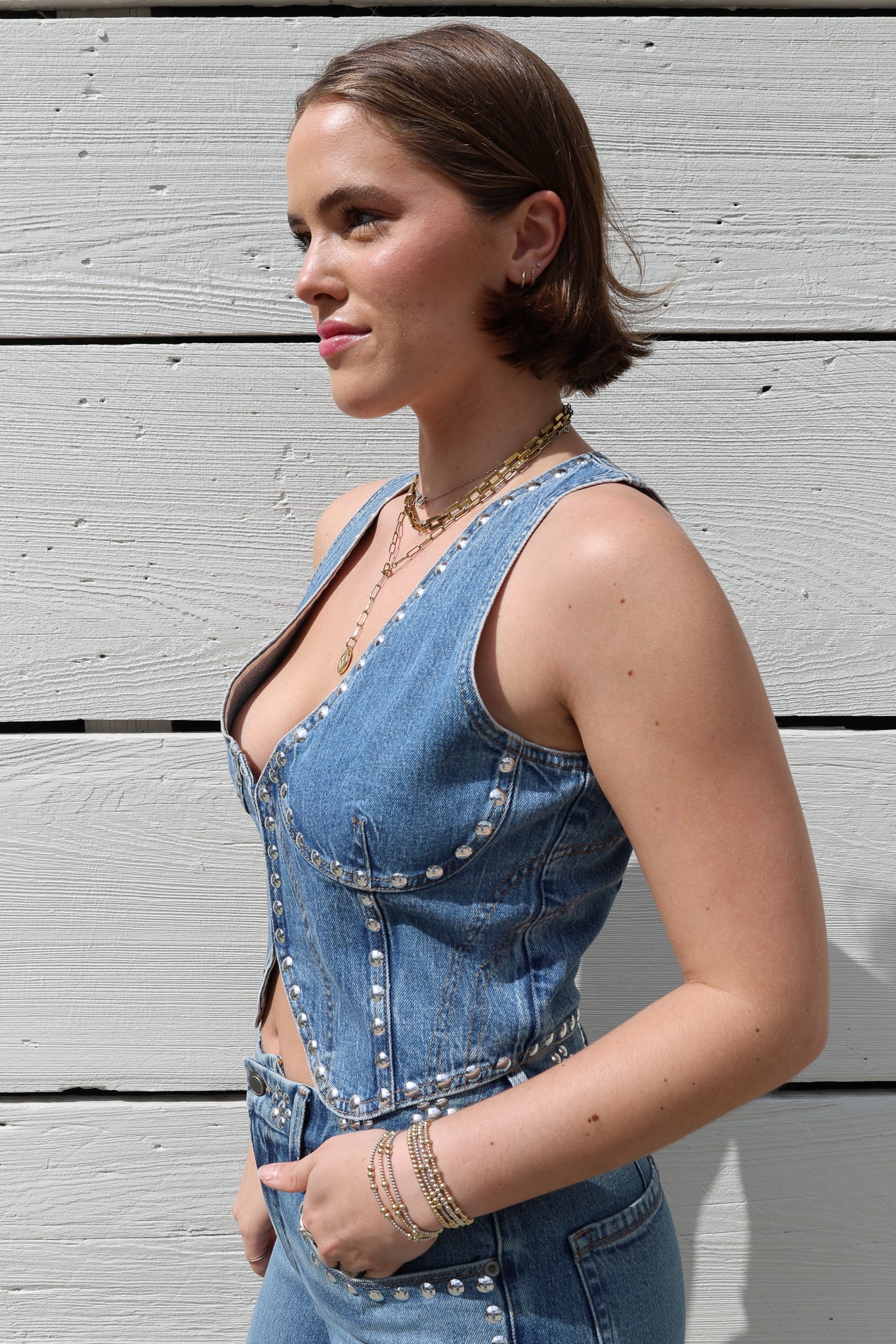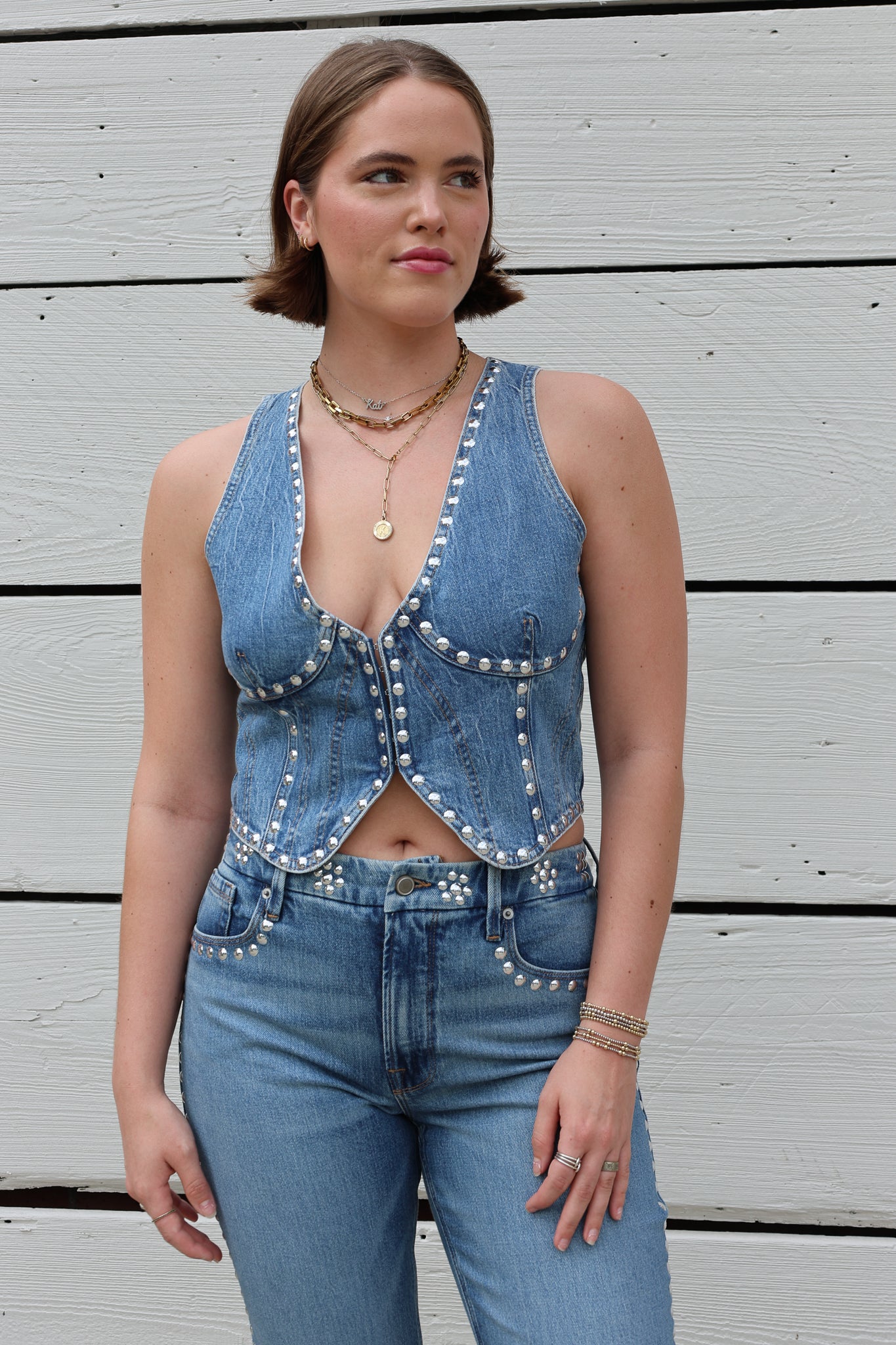 Studded Denim Vest