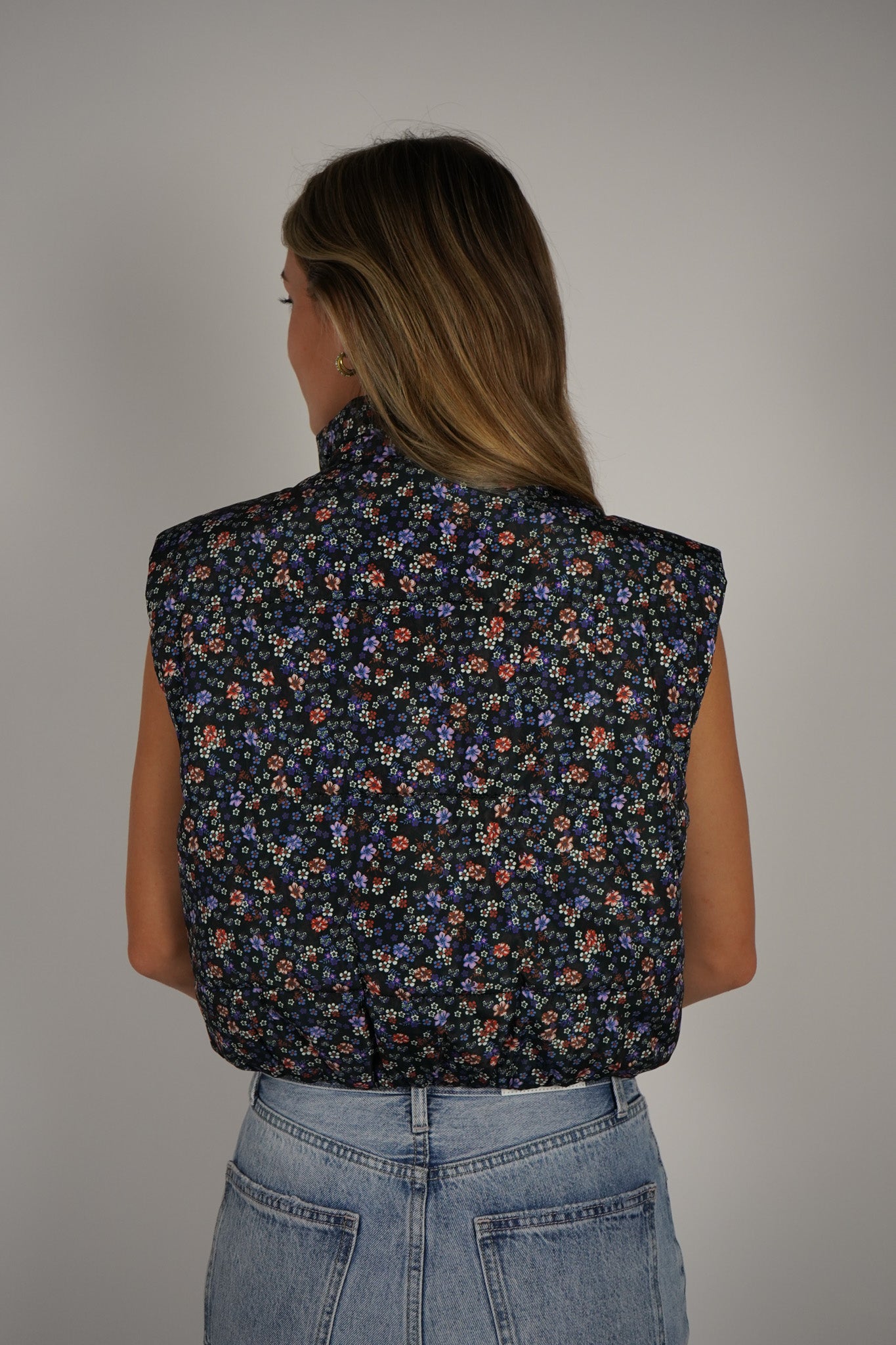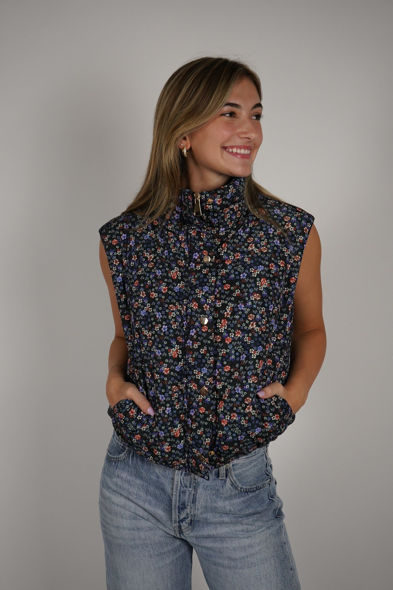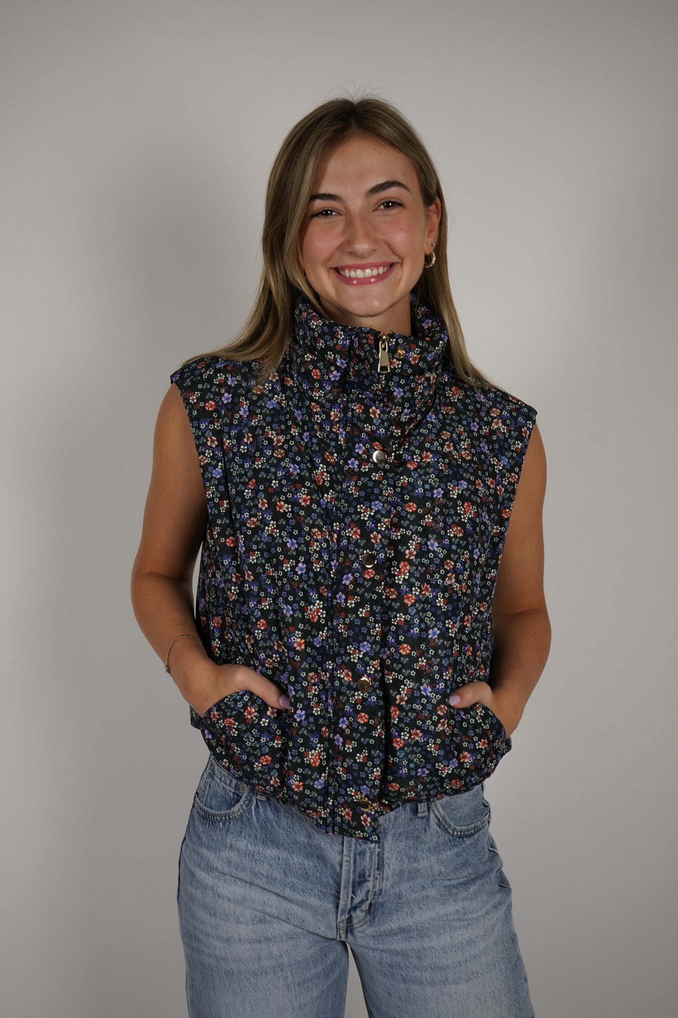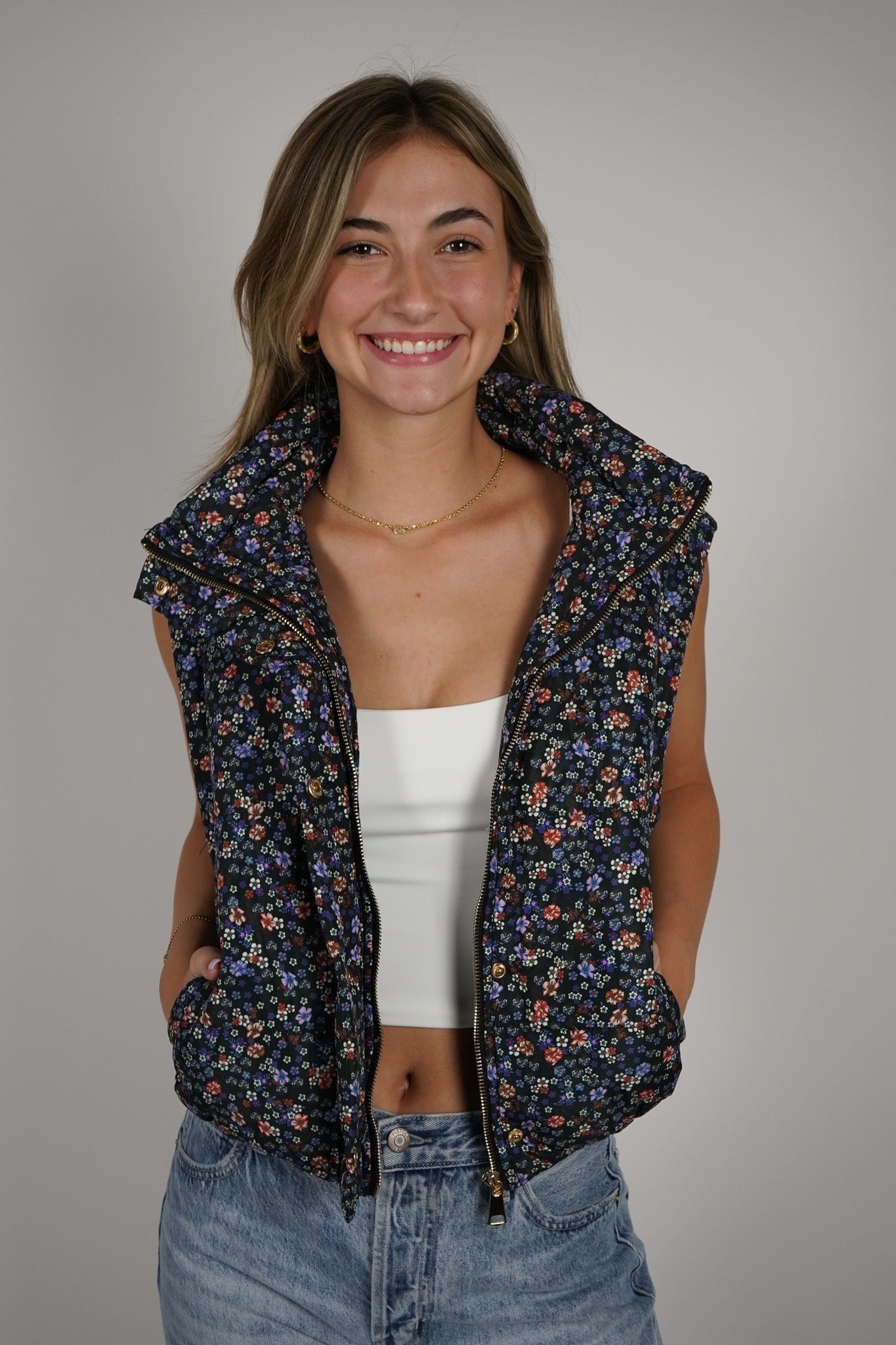 Introducing the Styx Puffer Vest, designed for both style and function. This vest features a unique floral front zipper and snaps, adding a touch of elegance to your look. With its functional design, you can easily layer this vest for added warmth and comfort. Elevate your wardrobe with the Styx Puffer Vest.