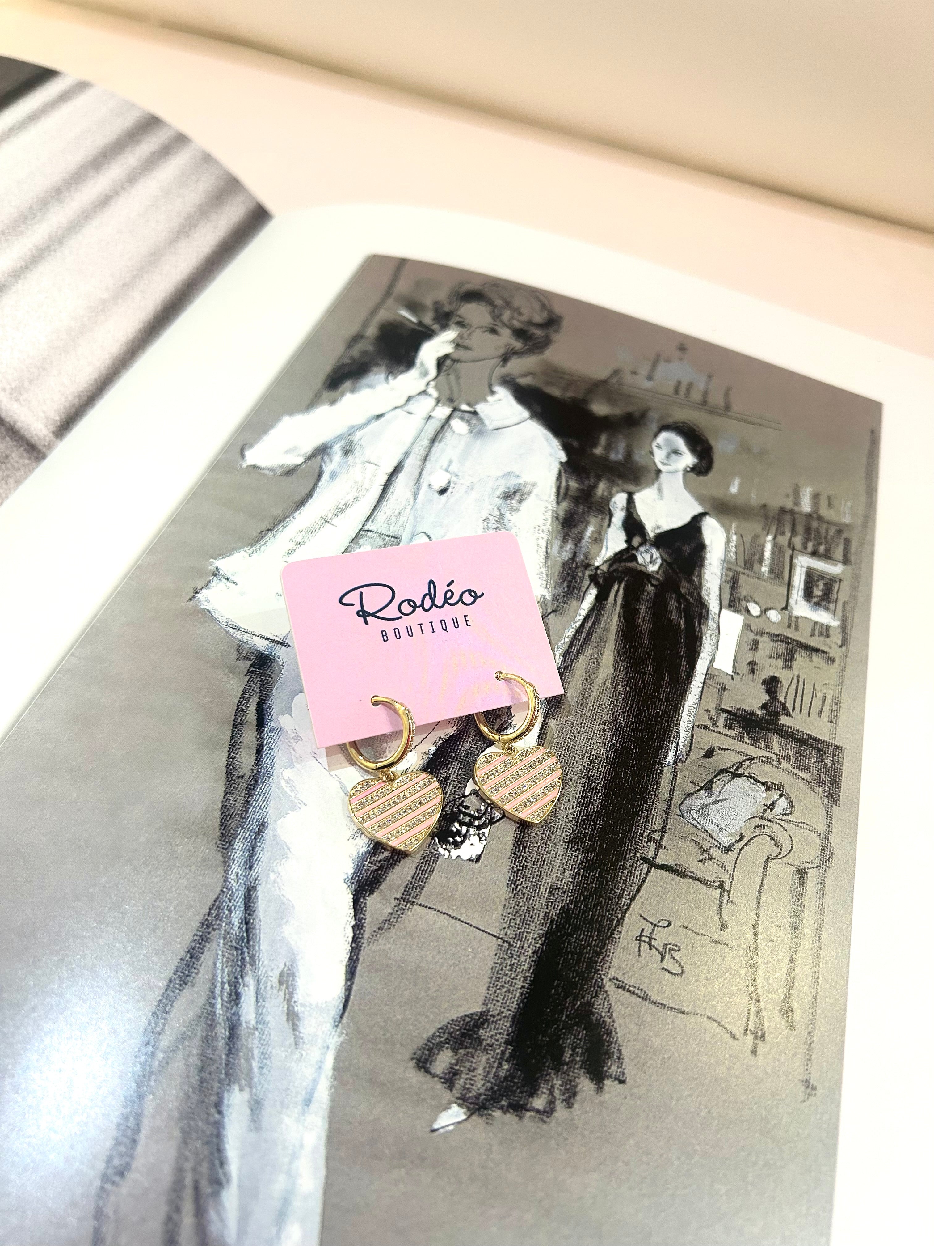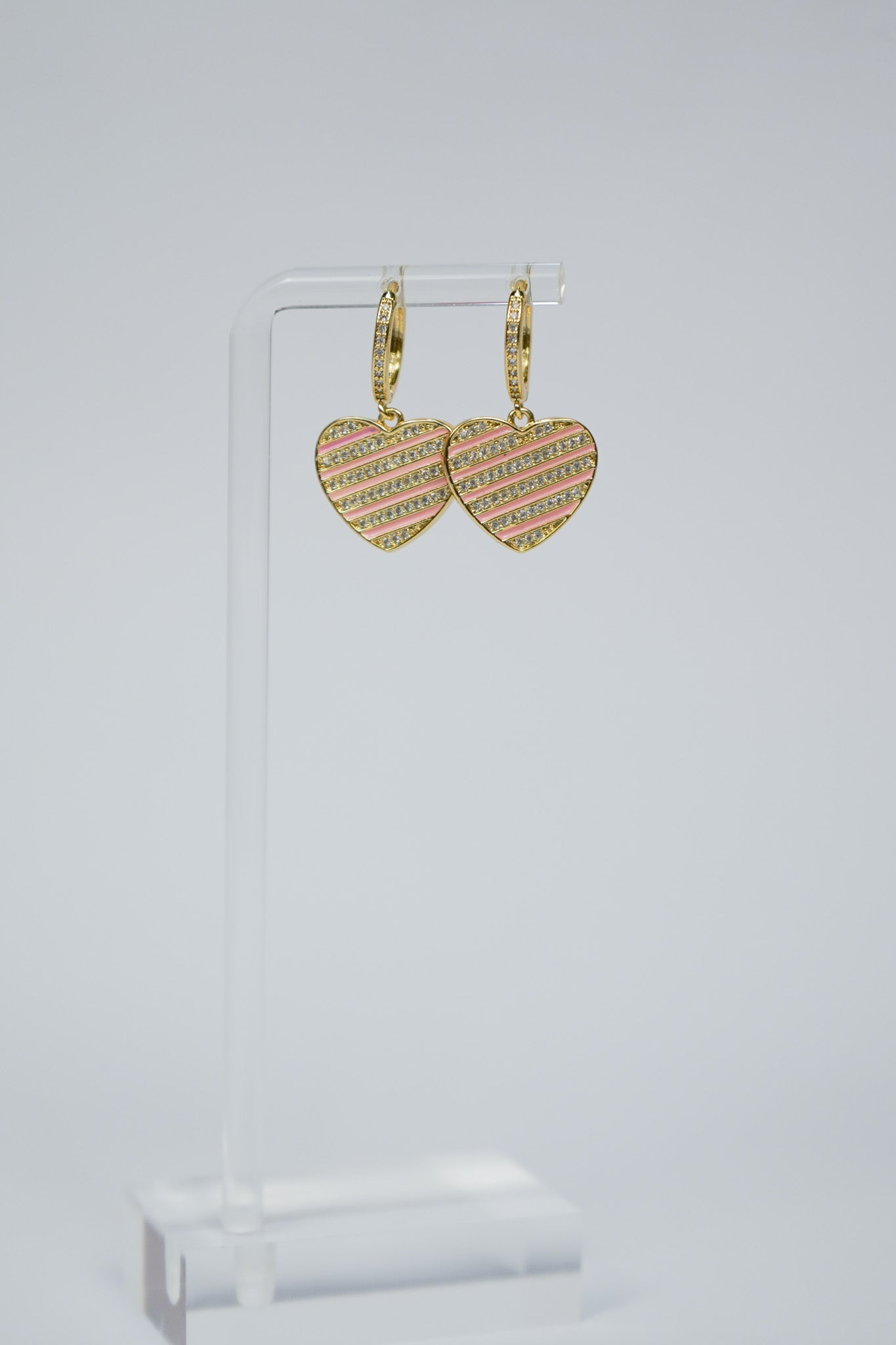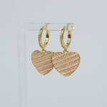 Crystal Zircon Heart Enamel Hoop Drop Earrings
