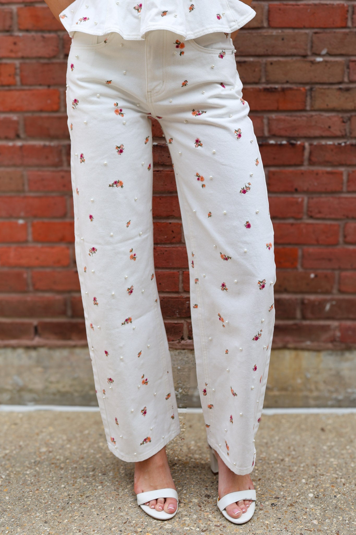 Steve Madden Sydnee Floral with Pearls Jean - Multicolor White