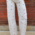 Make a statement with these antique-wash jeans featuring a bold floral print that transforms your everyday look. Practical front and back pockets keep you functional while the eye-catching design ensures you stand out. Pair with The Fiorella Top to complete the look.