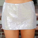 Get ready to shine in the Sydney Skirt! This silver sequin micro mini features built-in boy shorts for extra comfort and a sleek side zipper for easy wear. Perfect for parties or nights out, it’s all about sparkling in style while keeping things comfy and cool.
