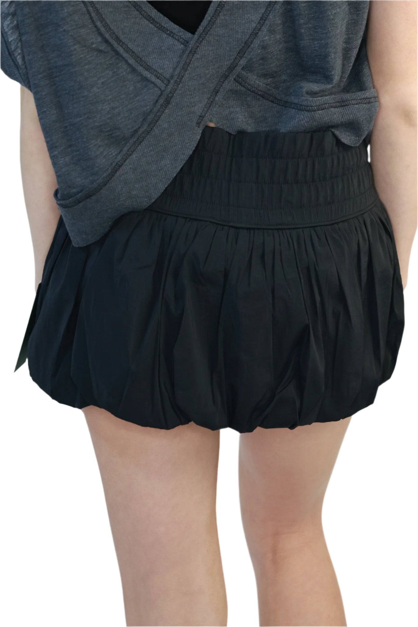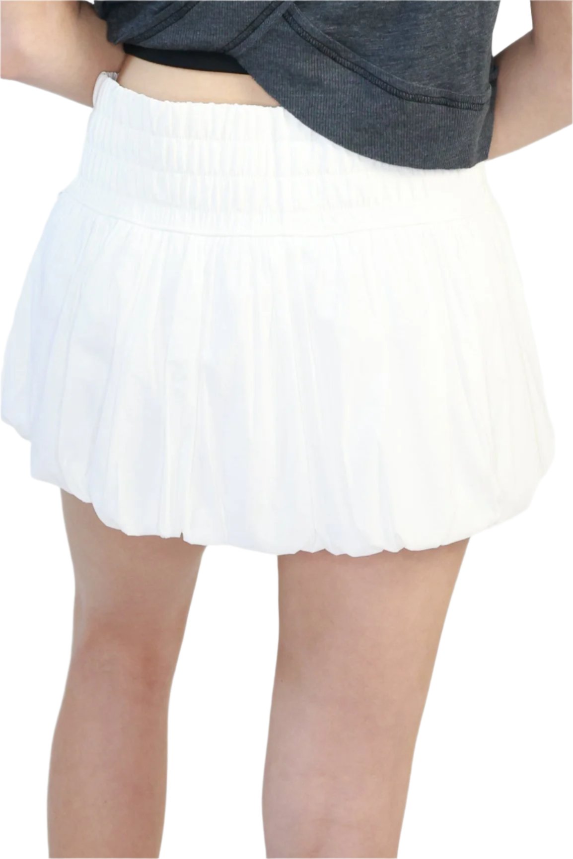 Upgrade your tennis or pickleball game with The Pouf Skirt. This pleated skirt comes in black or white and features a wide waistband for extra comfort. The built-in boy shorts provide added coverage while you play in style.