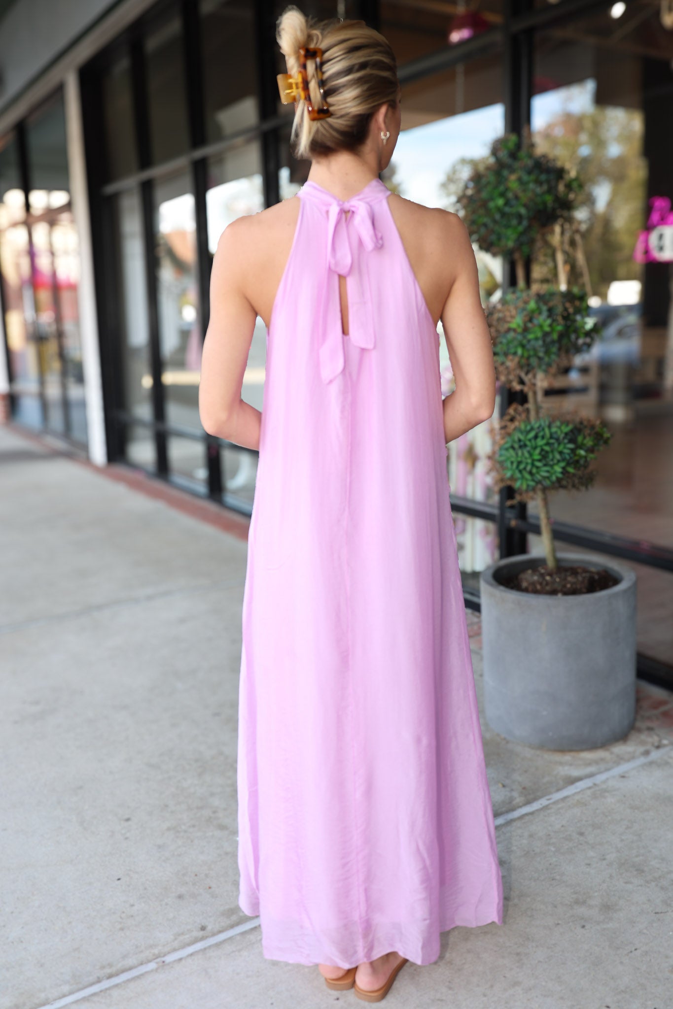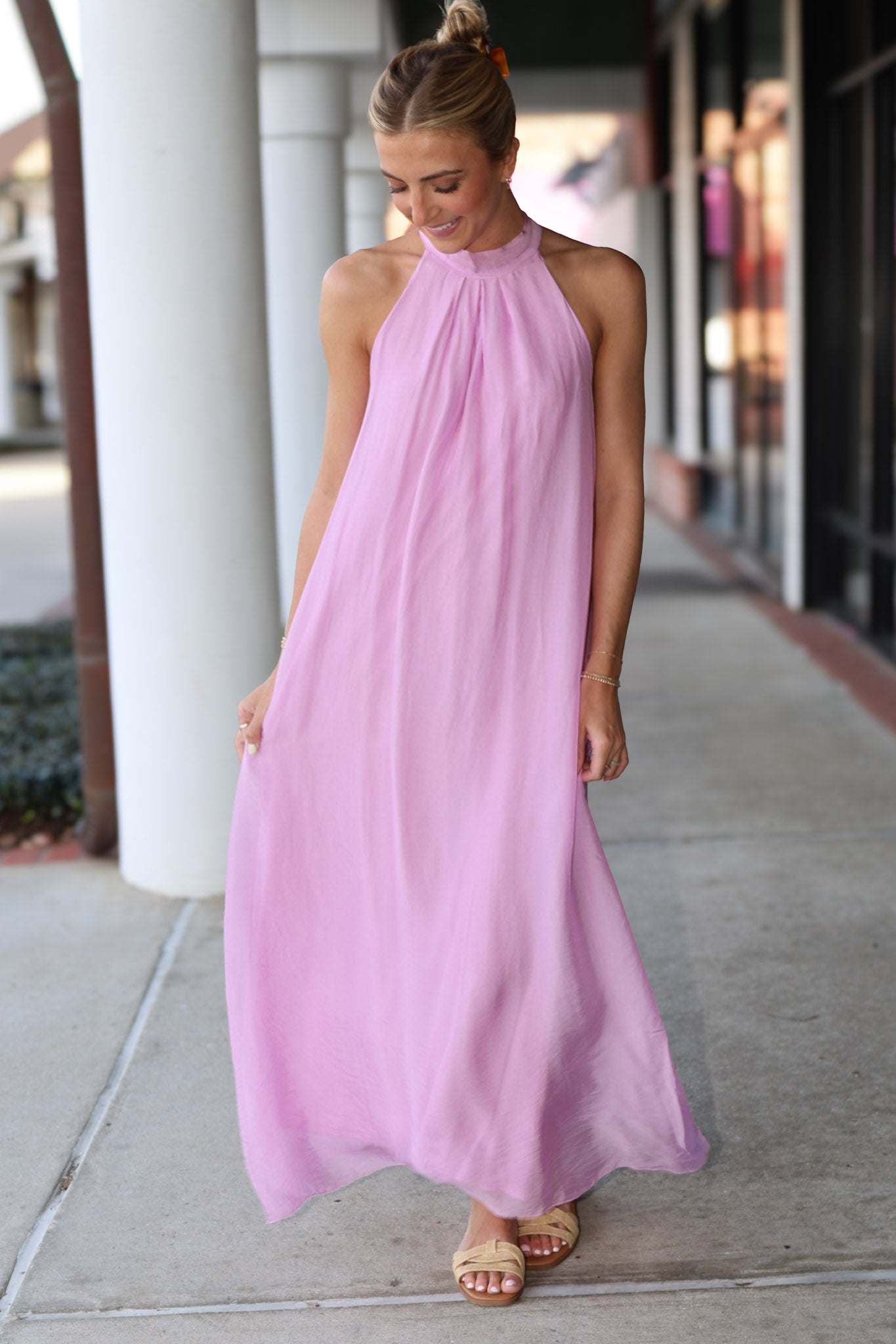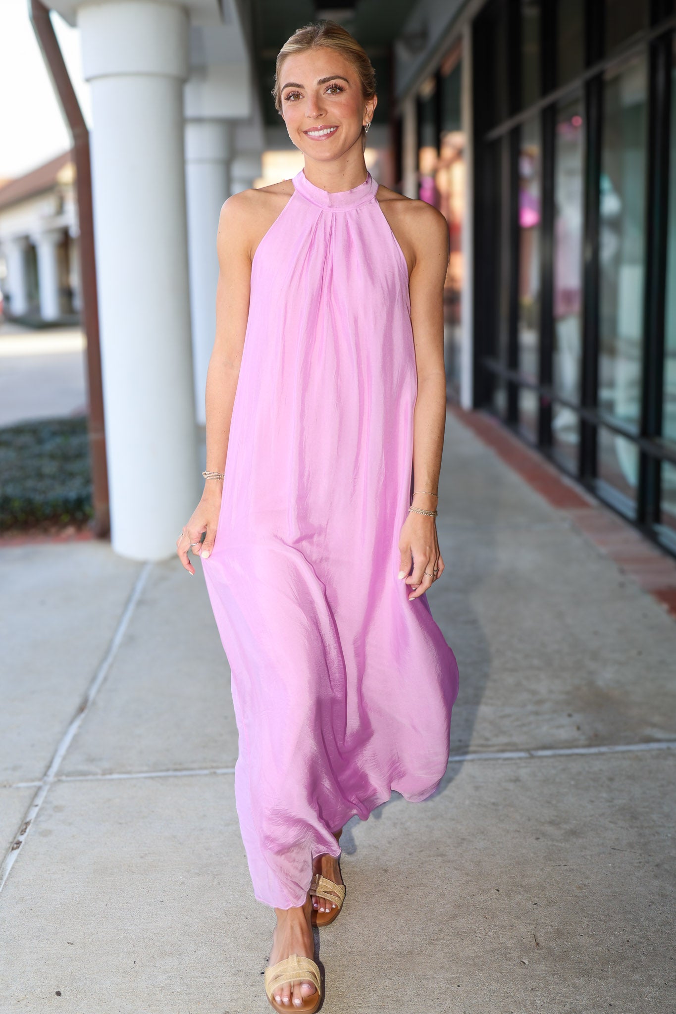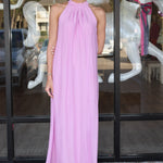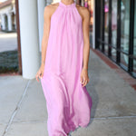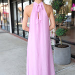 Deluc High Neck with Tie Vita Sleeveless Flowy Maxi Dress - Pink