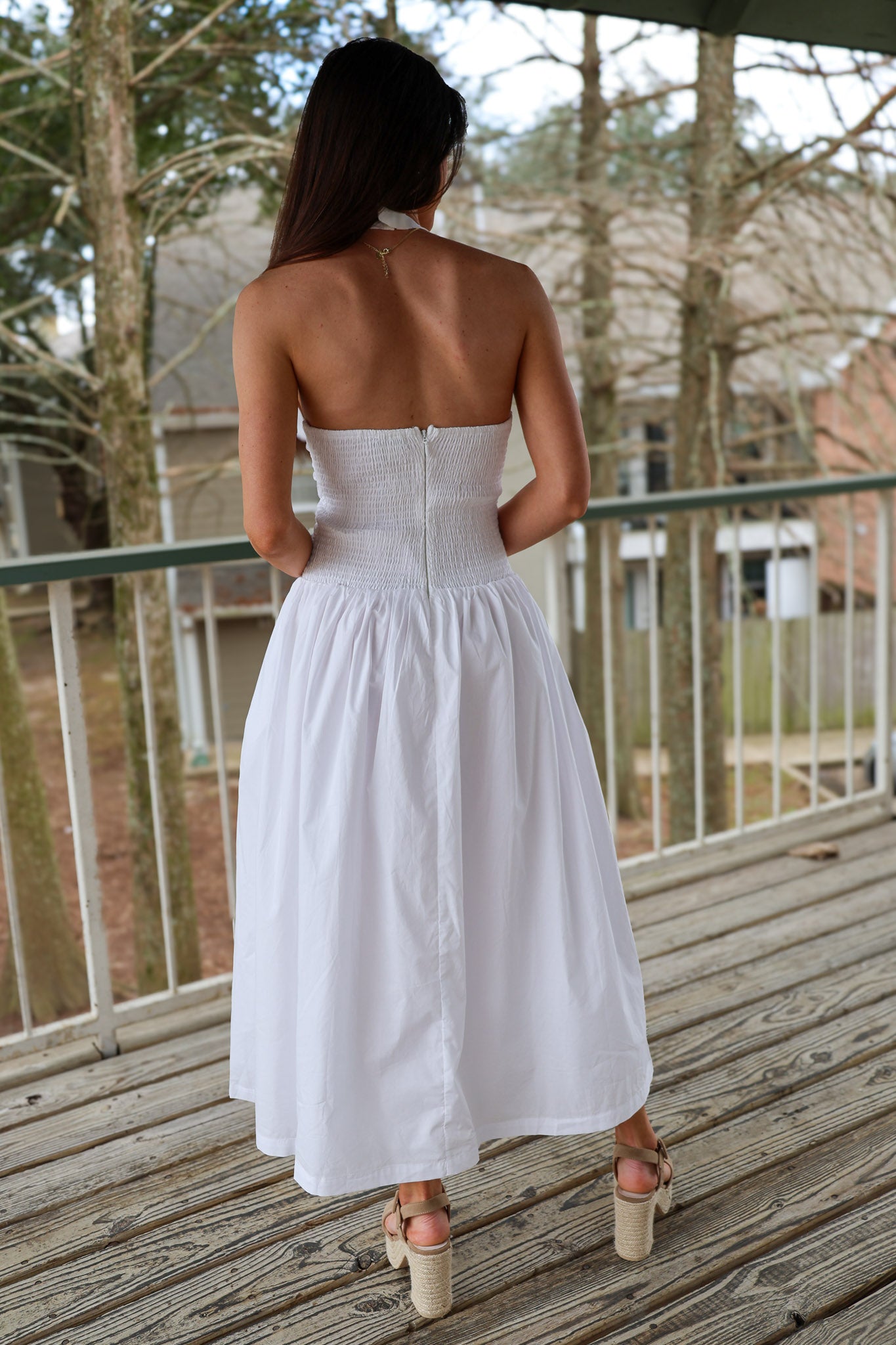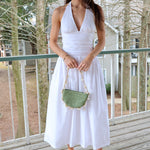 Halter Neck Midi Smocked Back Dress - White
