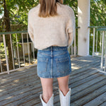The Wynne Denim Skirt by Free People is a timeless piece with serious attitude. Made from classic non-stretch denim, this mid-rise skirt has a relaxed fit that feels effortless and cool. The unique side button closure adds an unexpected detail that sets it apart. Style it with a crop top or oversized tee for that perfect casual vibe.